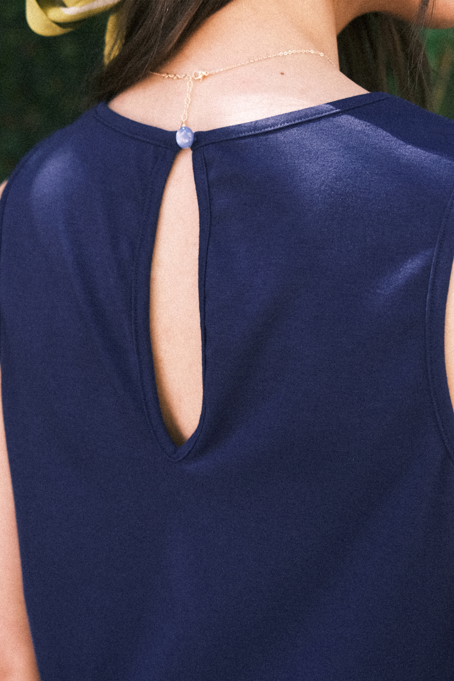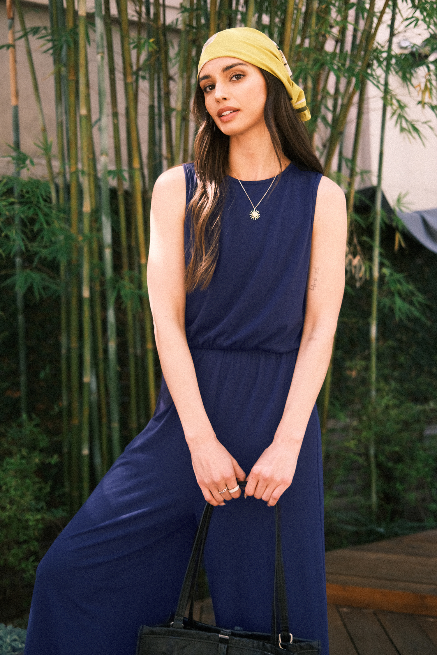 Mono azul marino con cuello redondo y pernera recta sin mangas