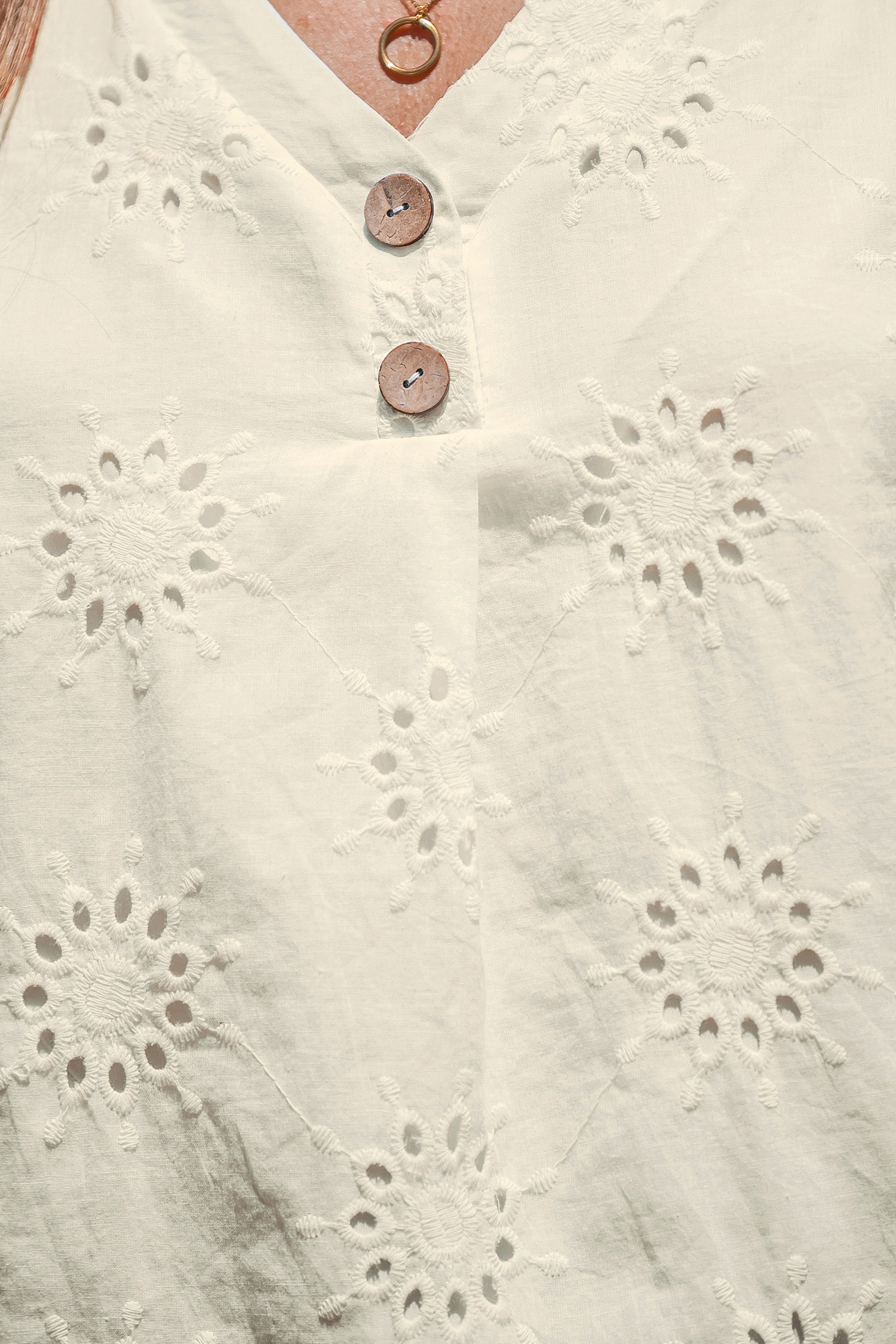 Top neutro con cuello en V y ojales