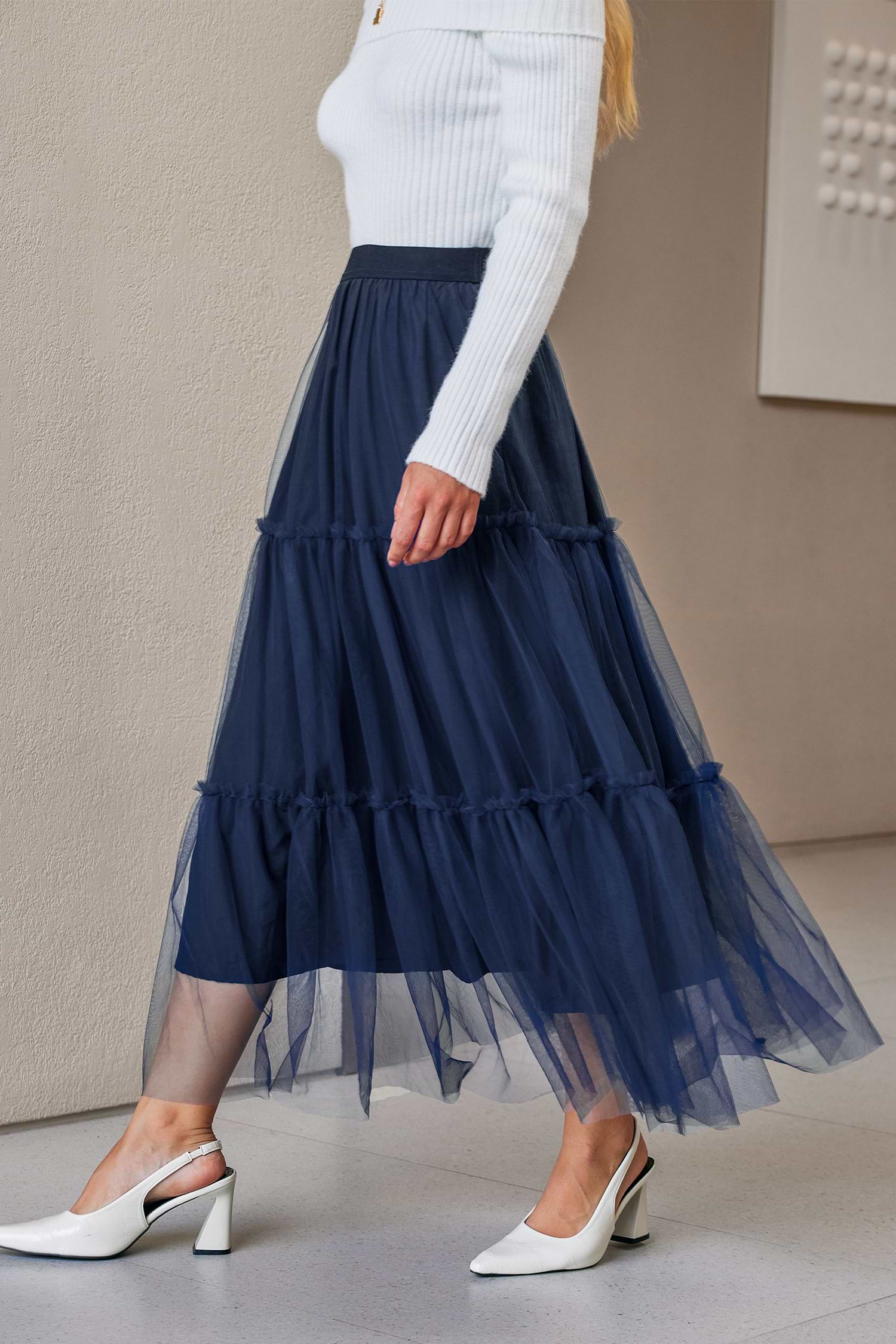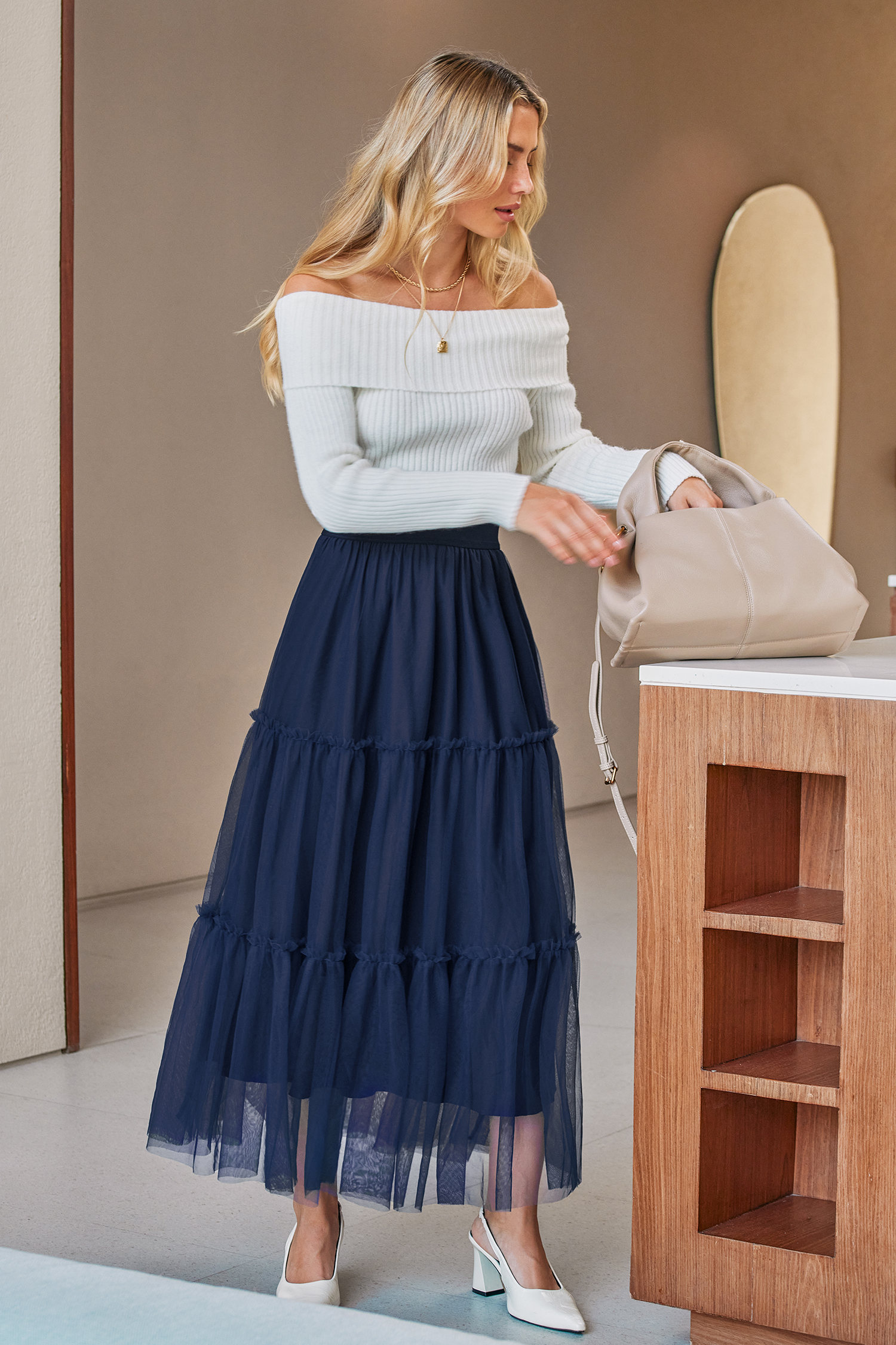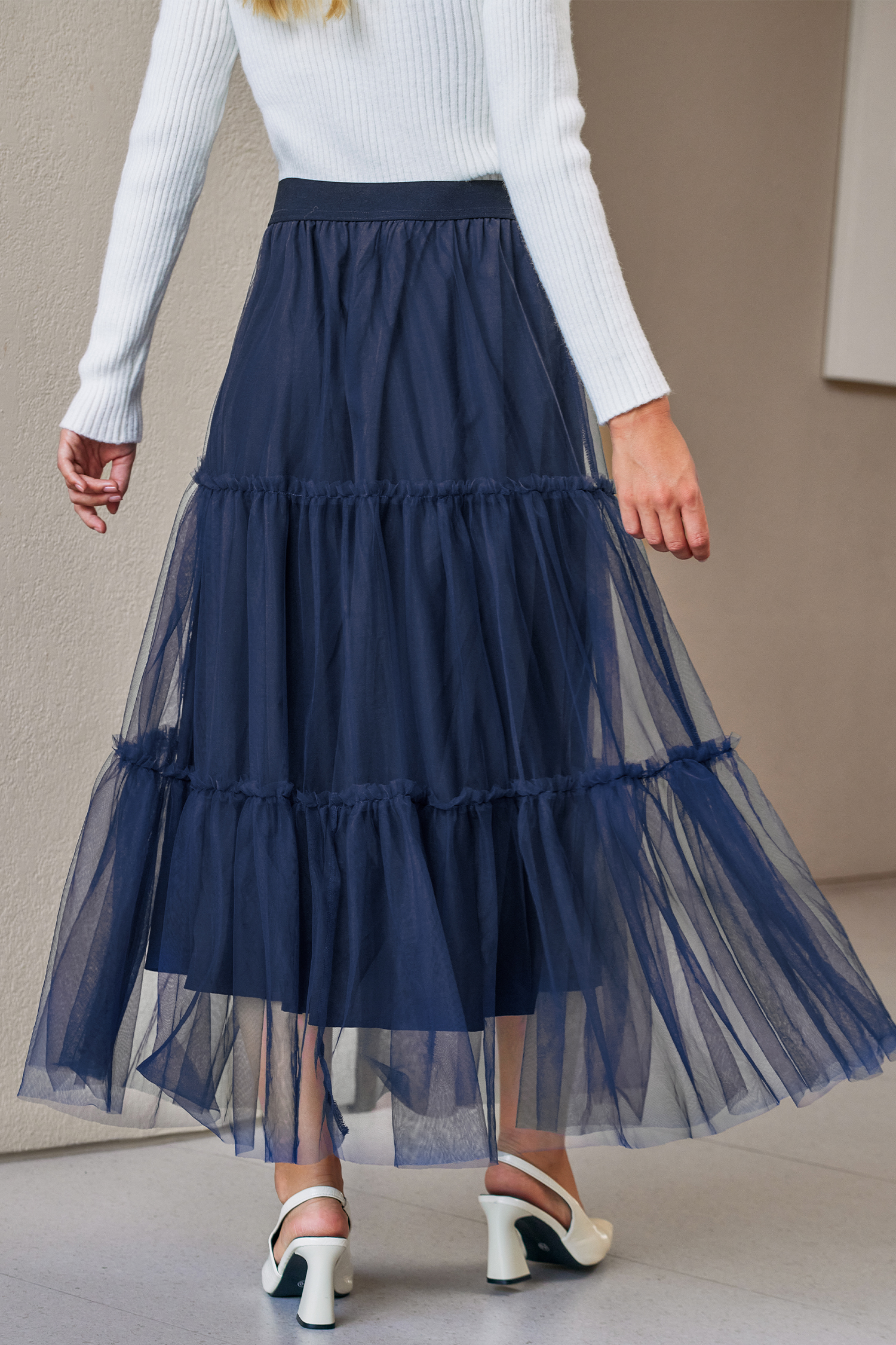 La falda maxi azul On the Scene está diseñada para causar sensación dondequiera que vayas. Su cintura elástica y su largo maxi crean un ajuste fluido y cómodo que se adapta a tus movimientos del día a la noche.