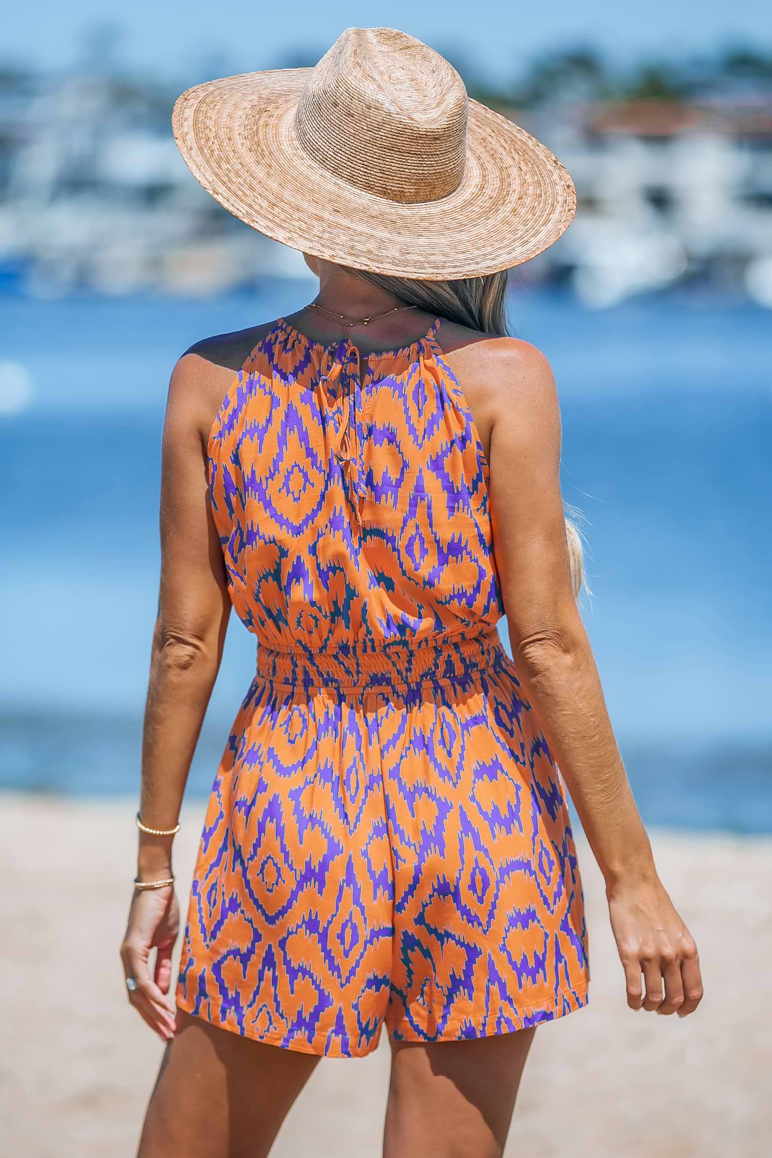 Mono sin mangas con cuello alto abstracto naranja