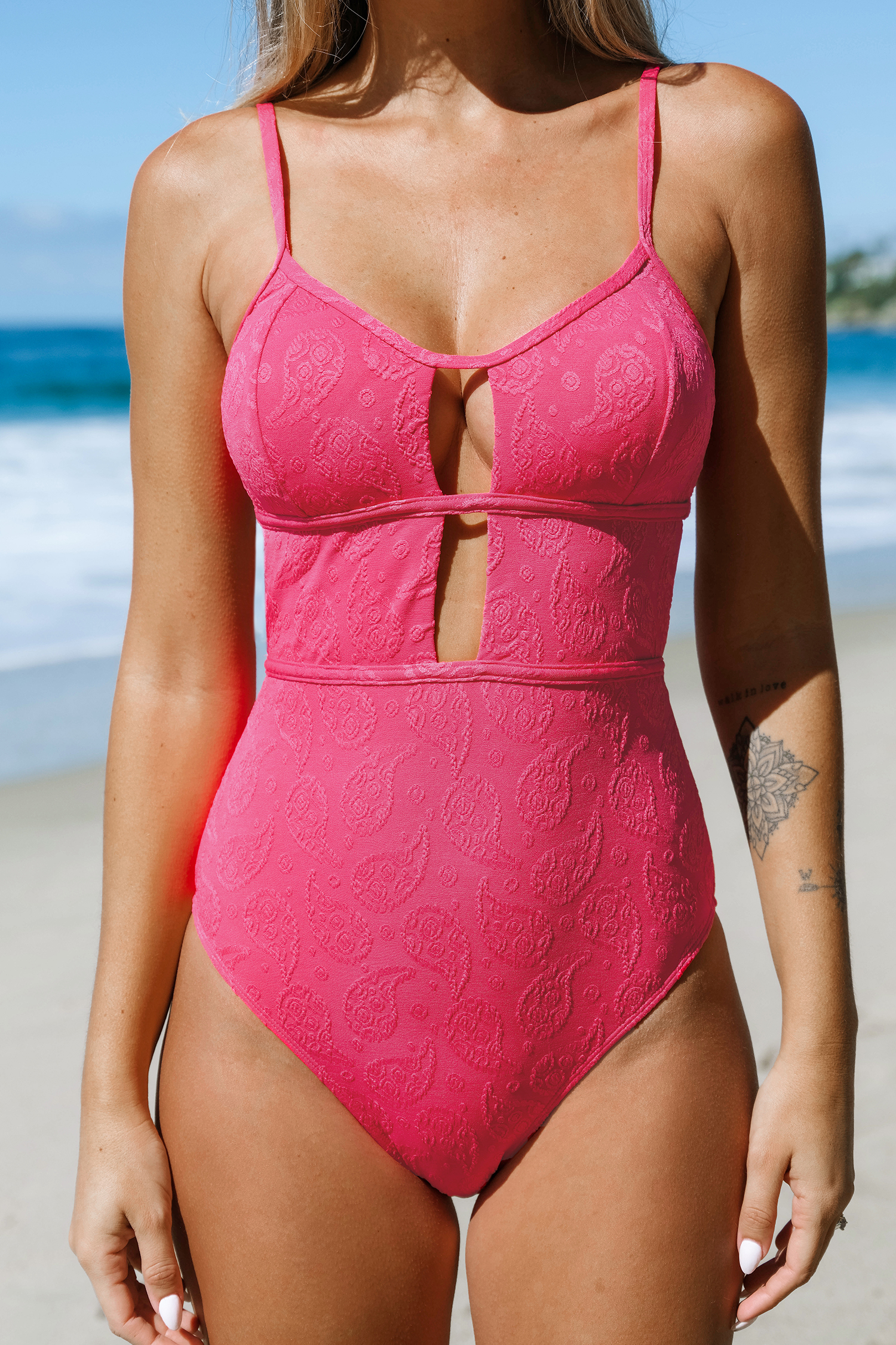 Traje de baño de una pieza con recorte de jacquard de cachemira rosa