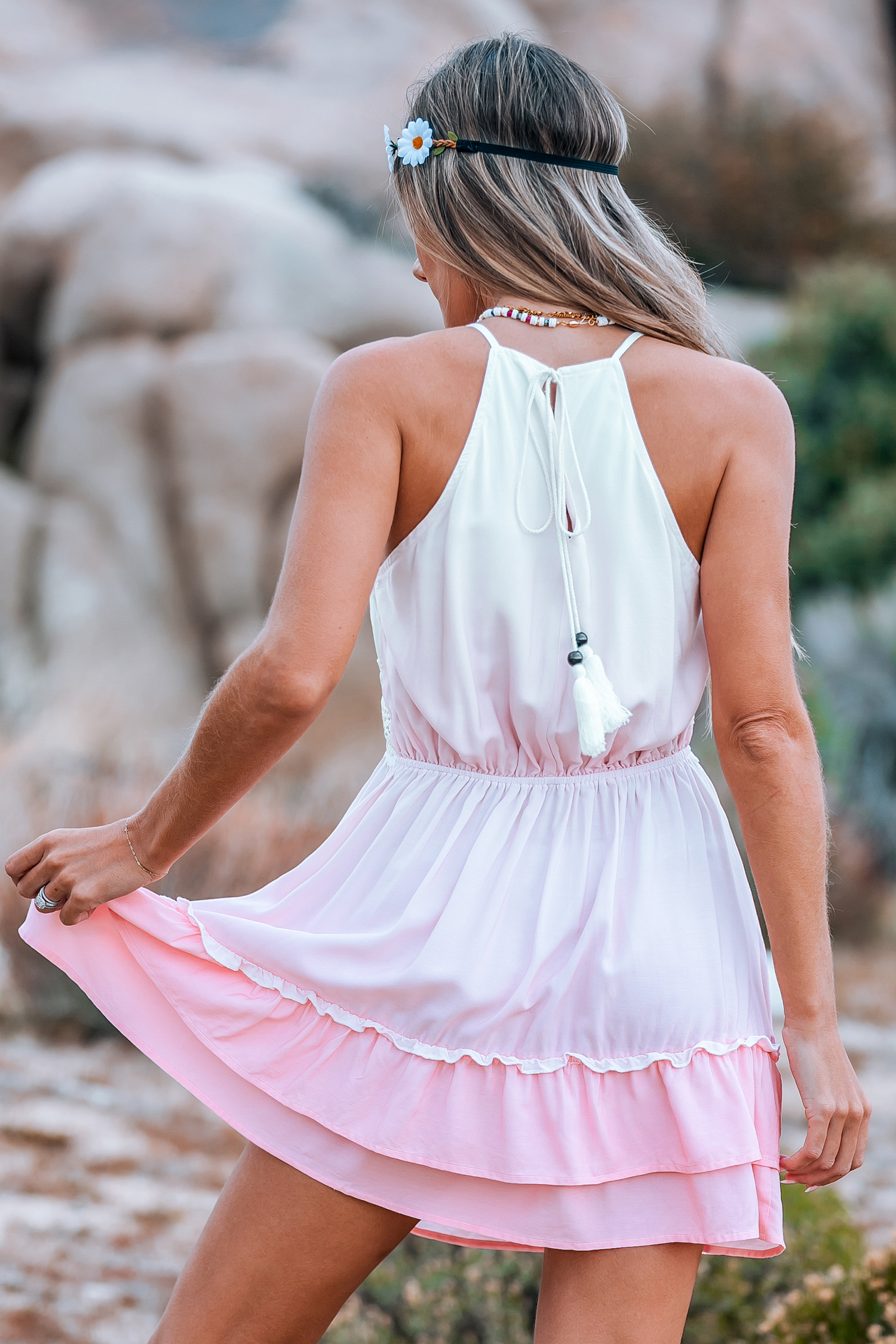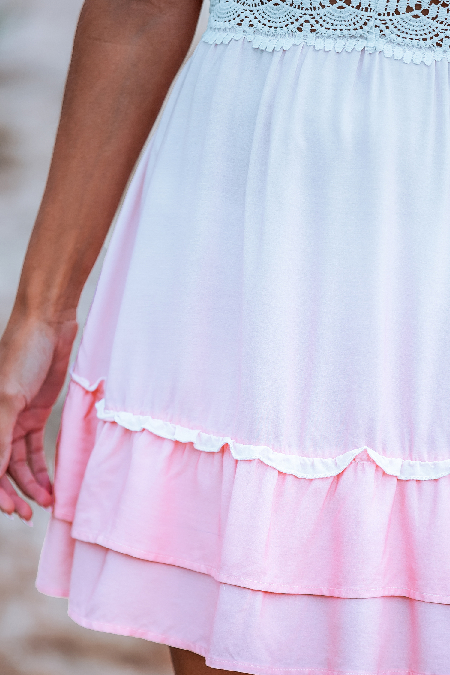 Minivestido de encaje sin mangas degradado rosa y blanco
