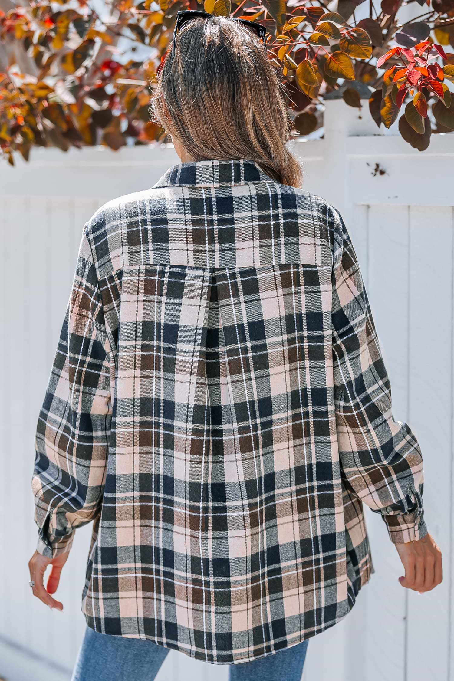 Camisa de manga larga con botones y cuello a cuadros