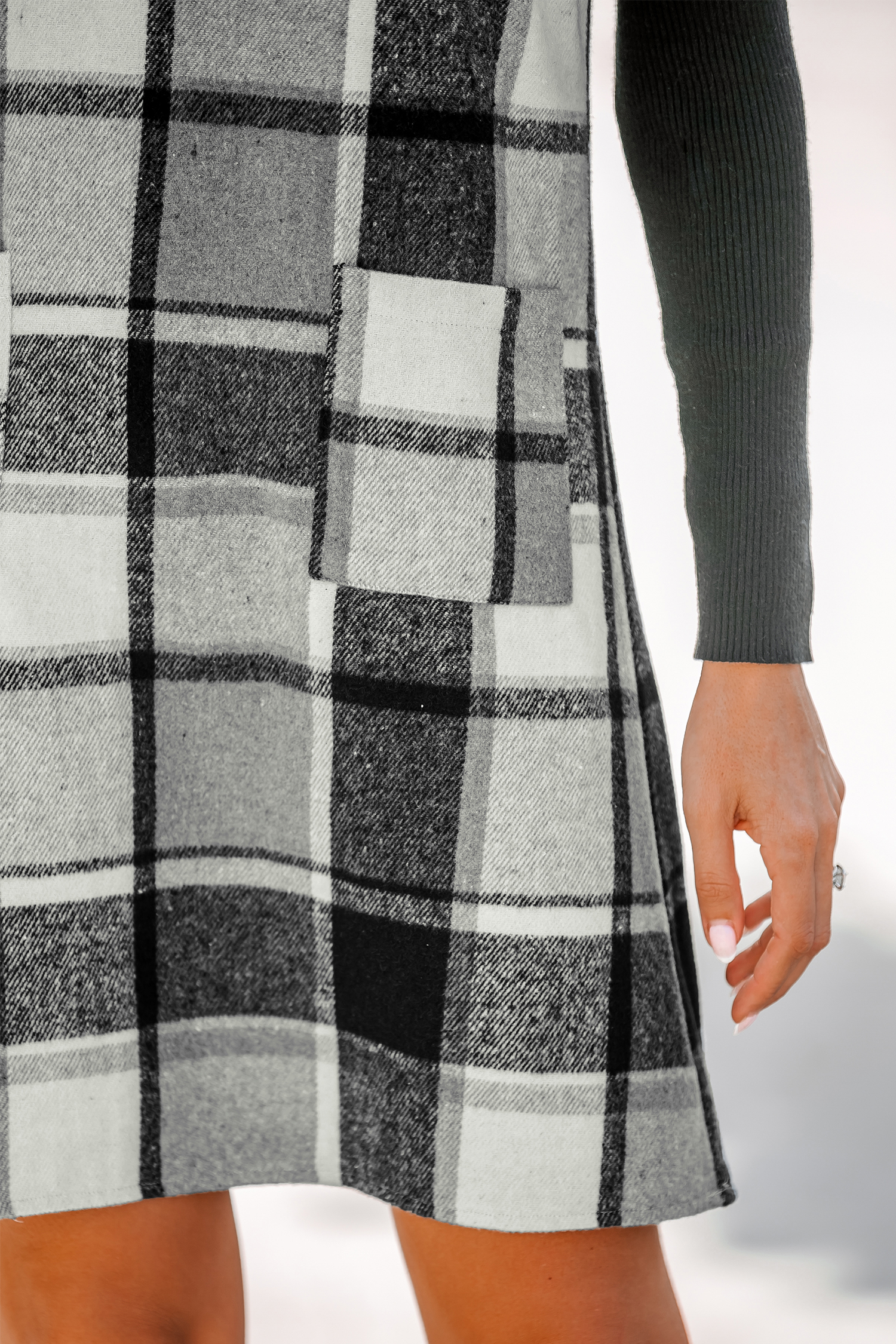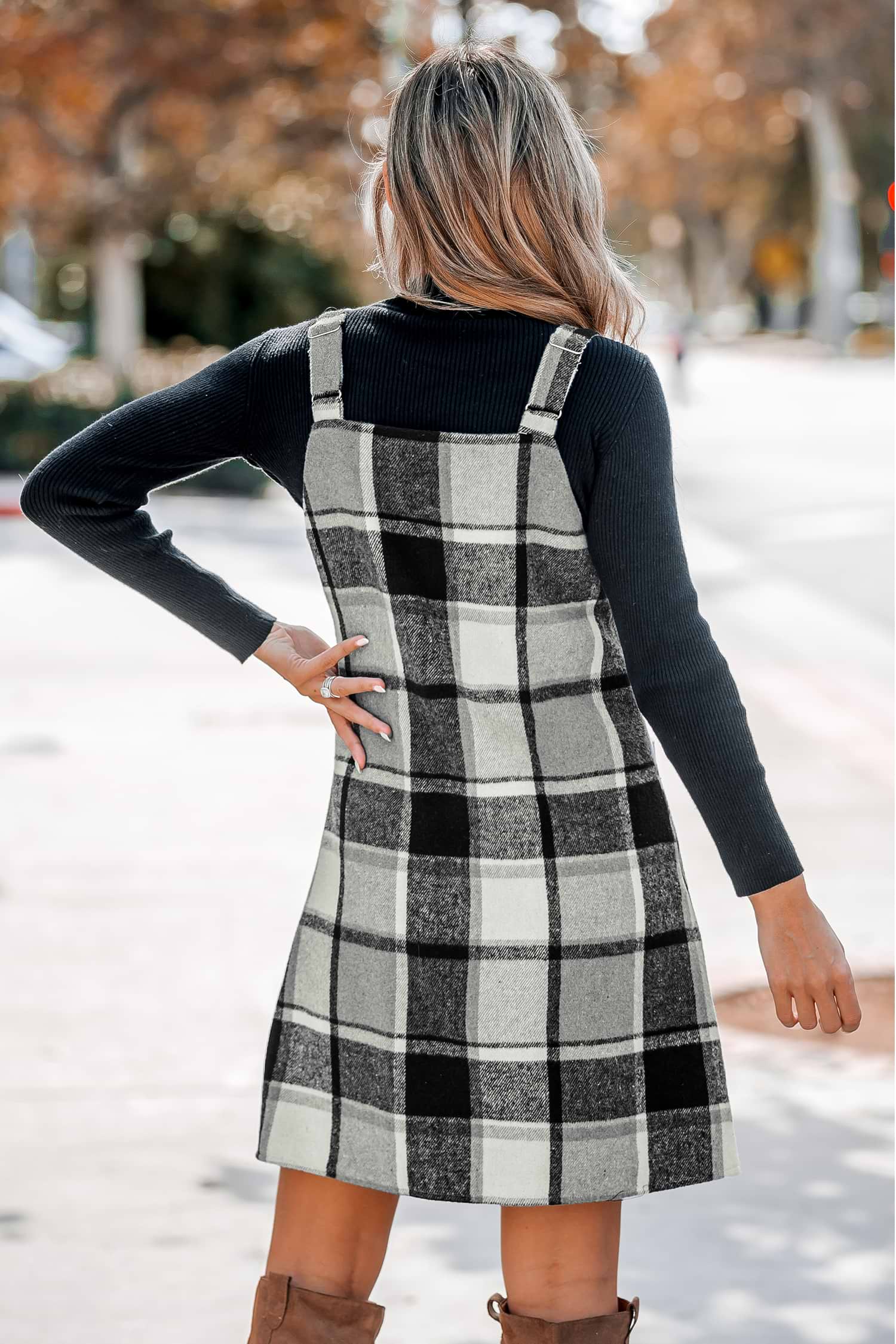 Minivestido acampanado con cuello en V y bolsillos a cuadros