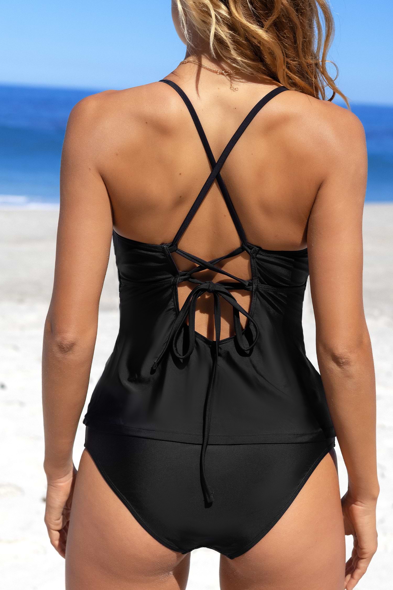 Conjunto de top tankini con escote en V pronunciado y pantalones estándar