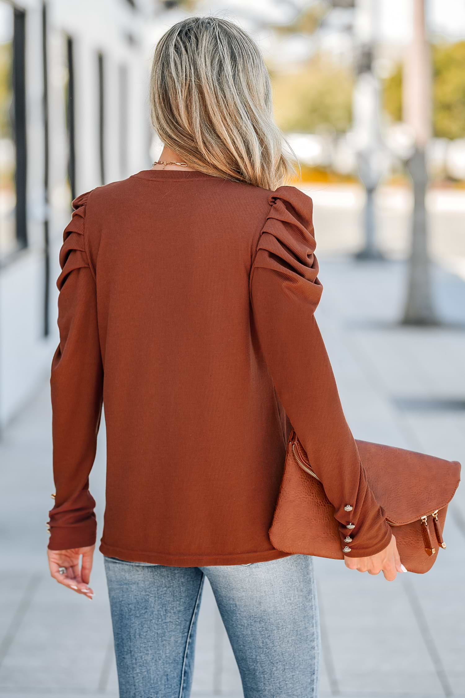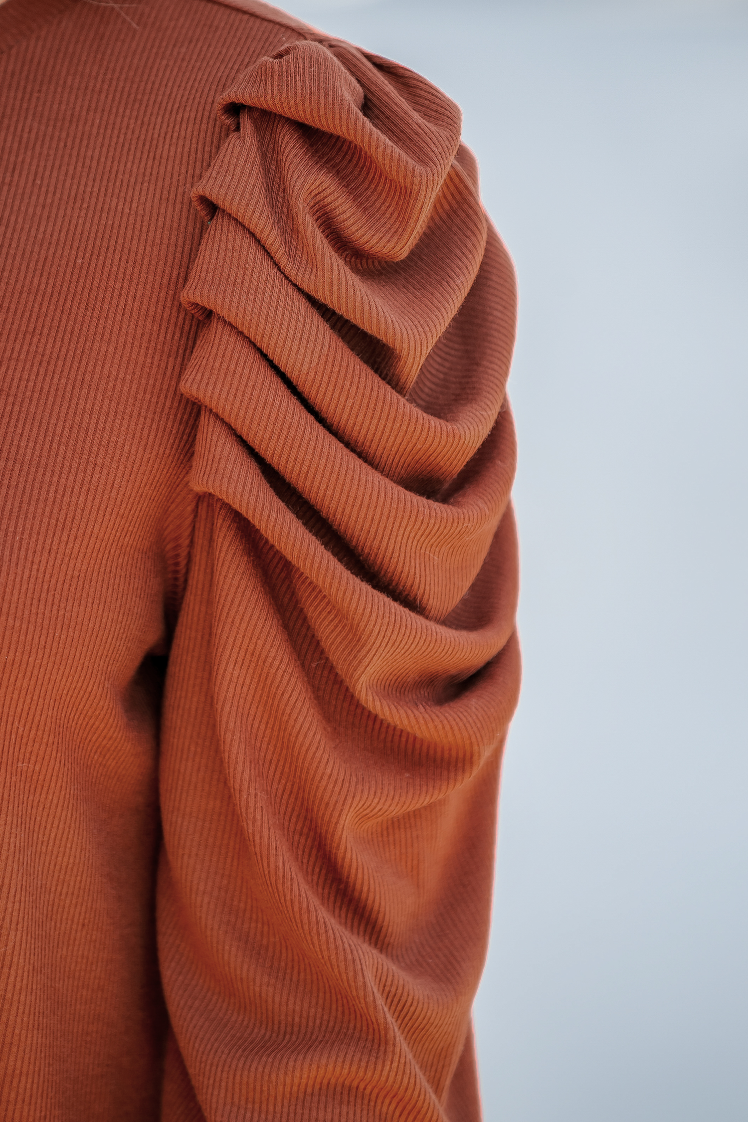 Camiseta fruncida de punto acanalado con mangas Gigot