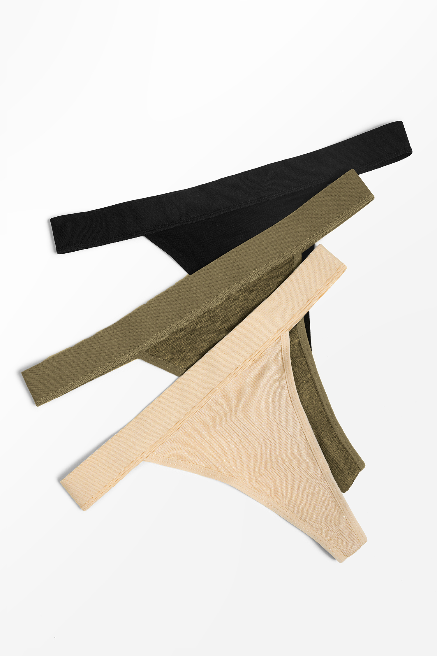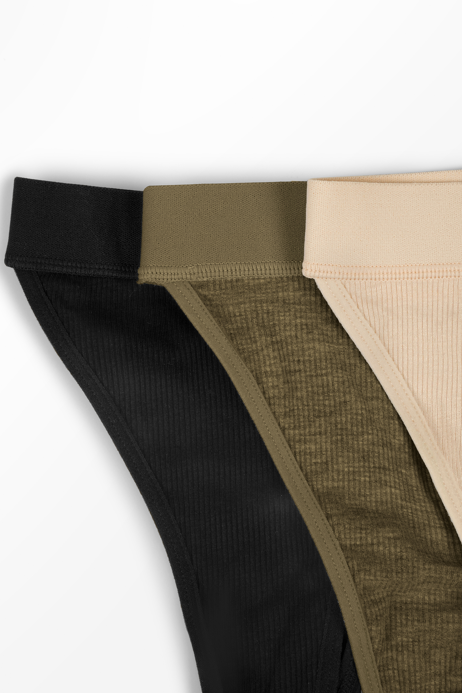 Braguitas tipo tanga de punto acanalado paquete de 3