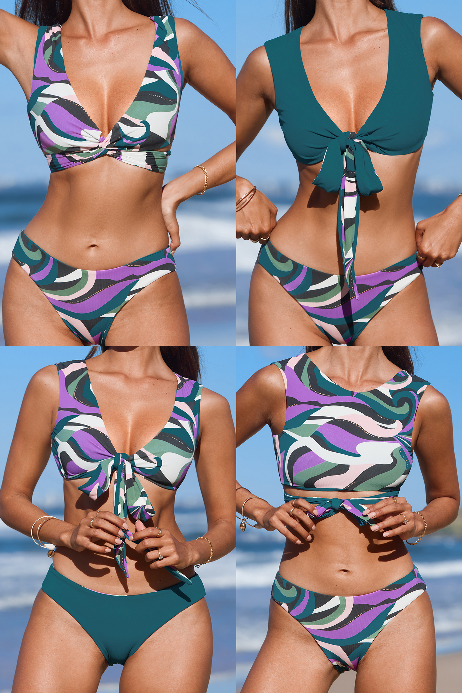 Conjunto de top de bikini multiposición y braguitas reversibles Rippling Waves