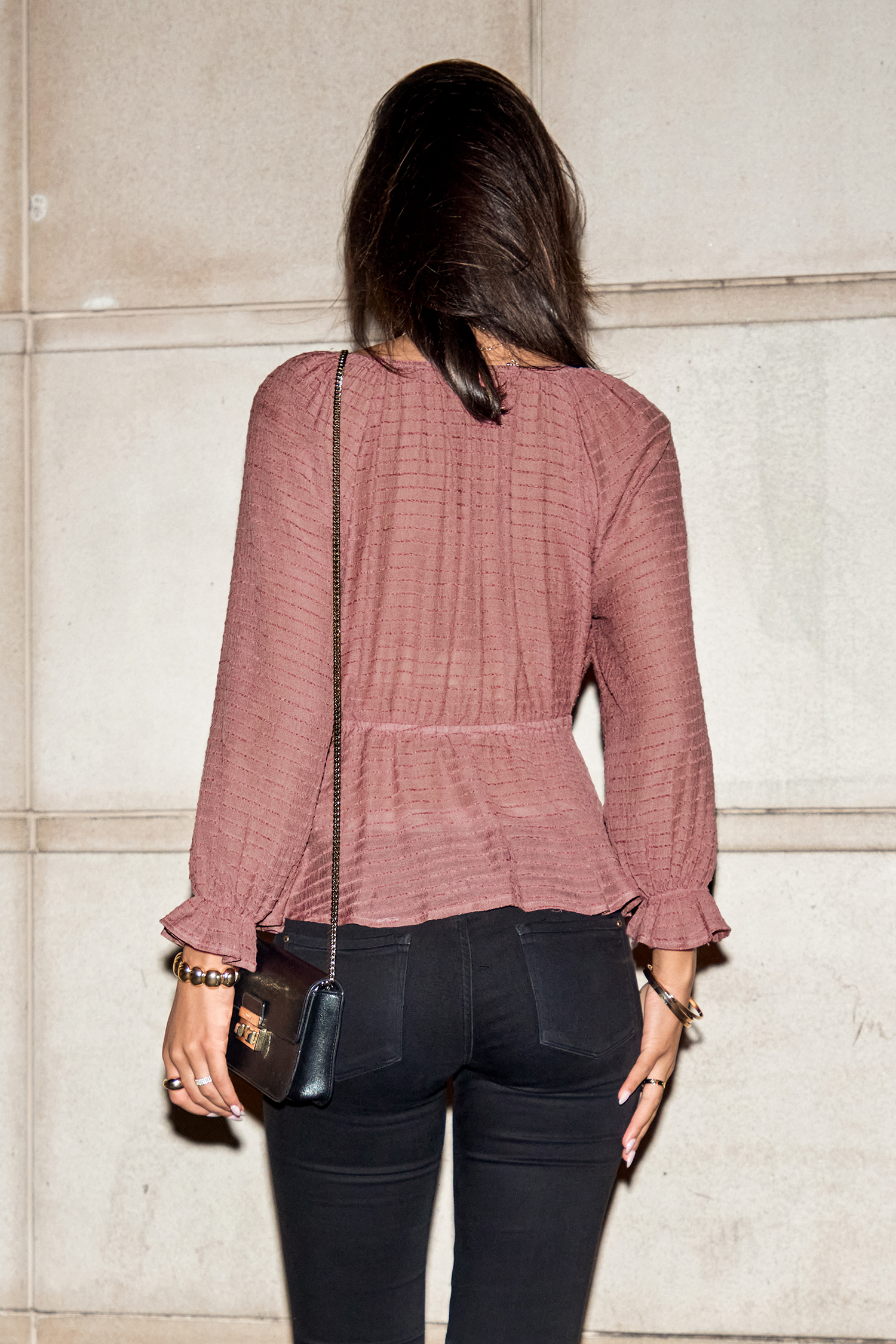 Blusa con mangas abullonadas y escote pronunciado en rosa