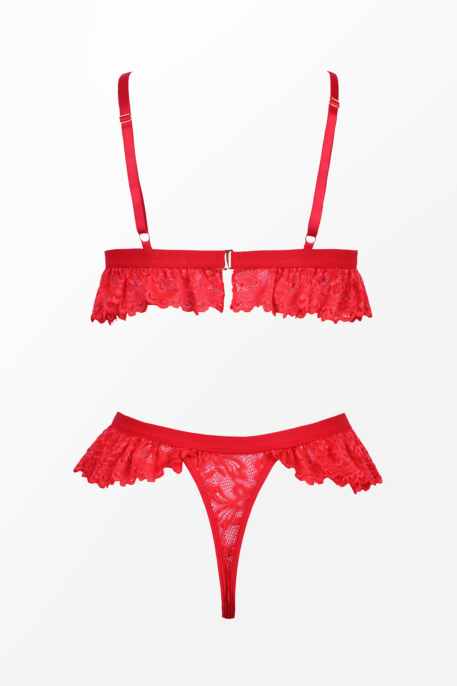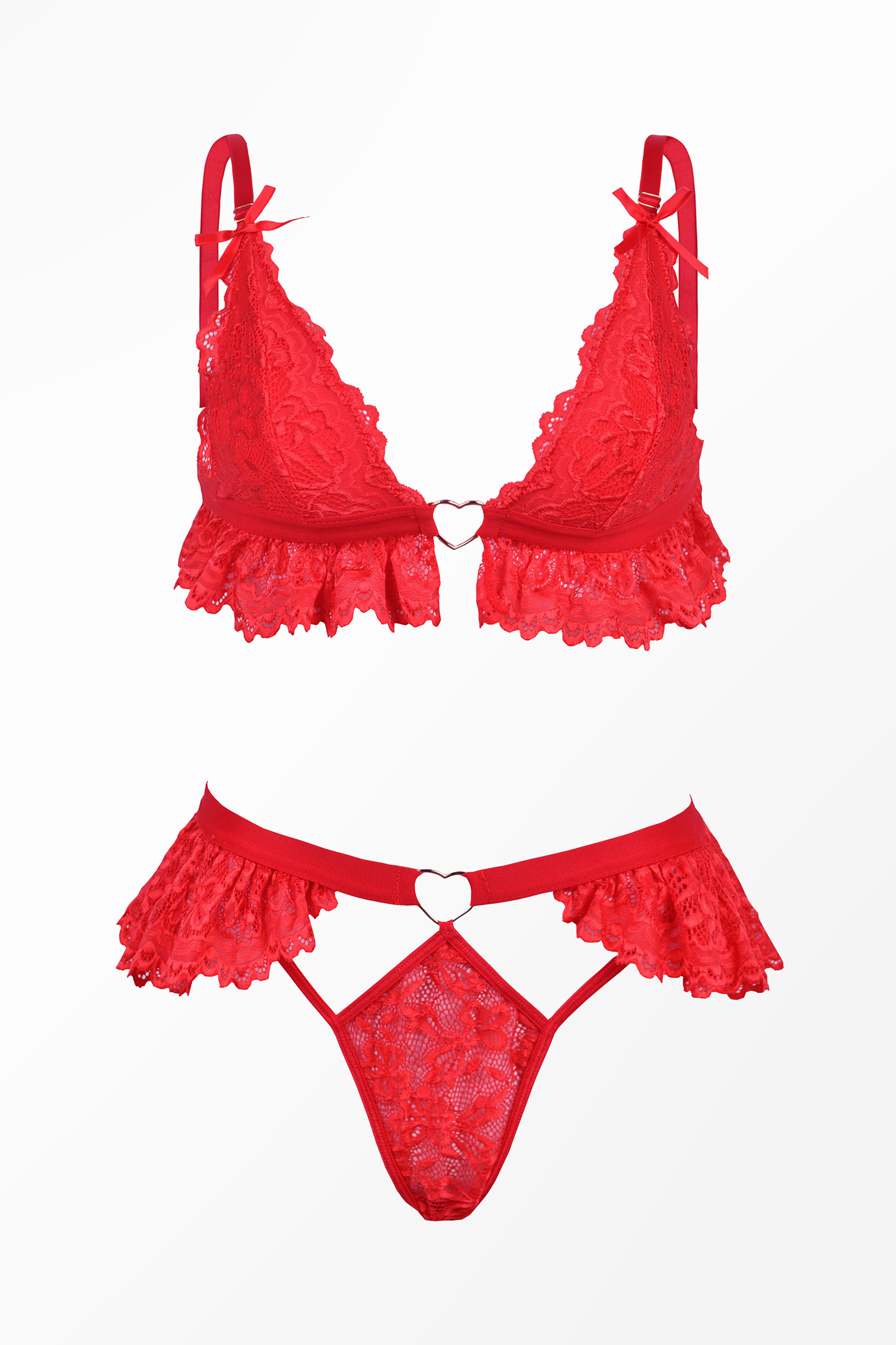 Conjunto de lencería con bralette y braguitas con dije de corazón en rojo rubí