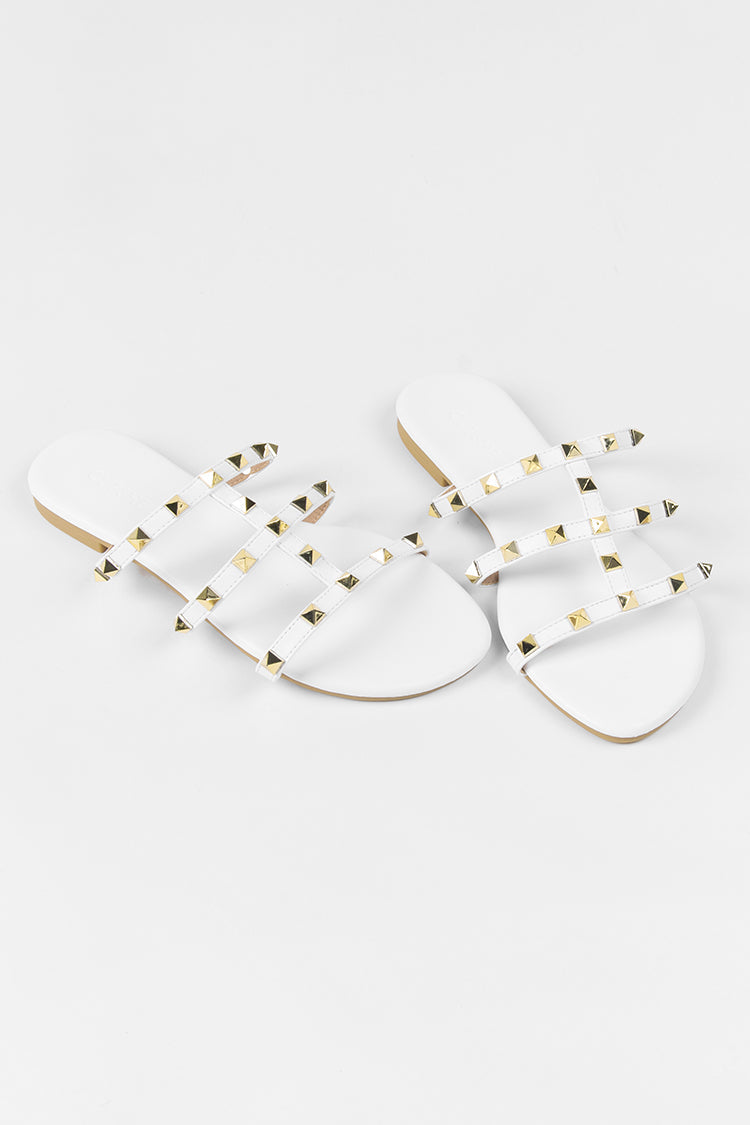 Sandalias Amaretto planas de color blanco y con dedos de los pies descubiertos