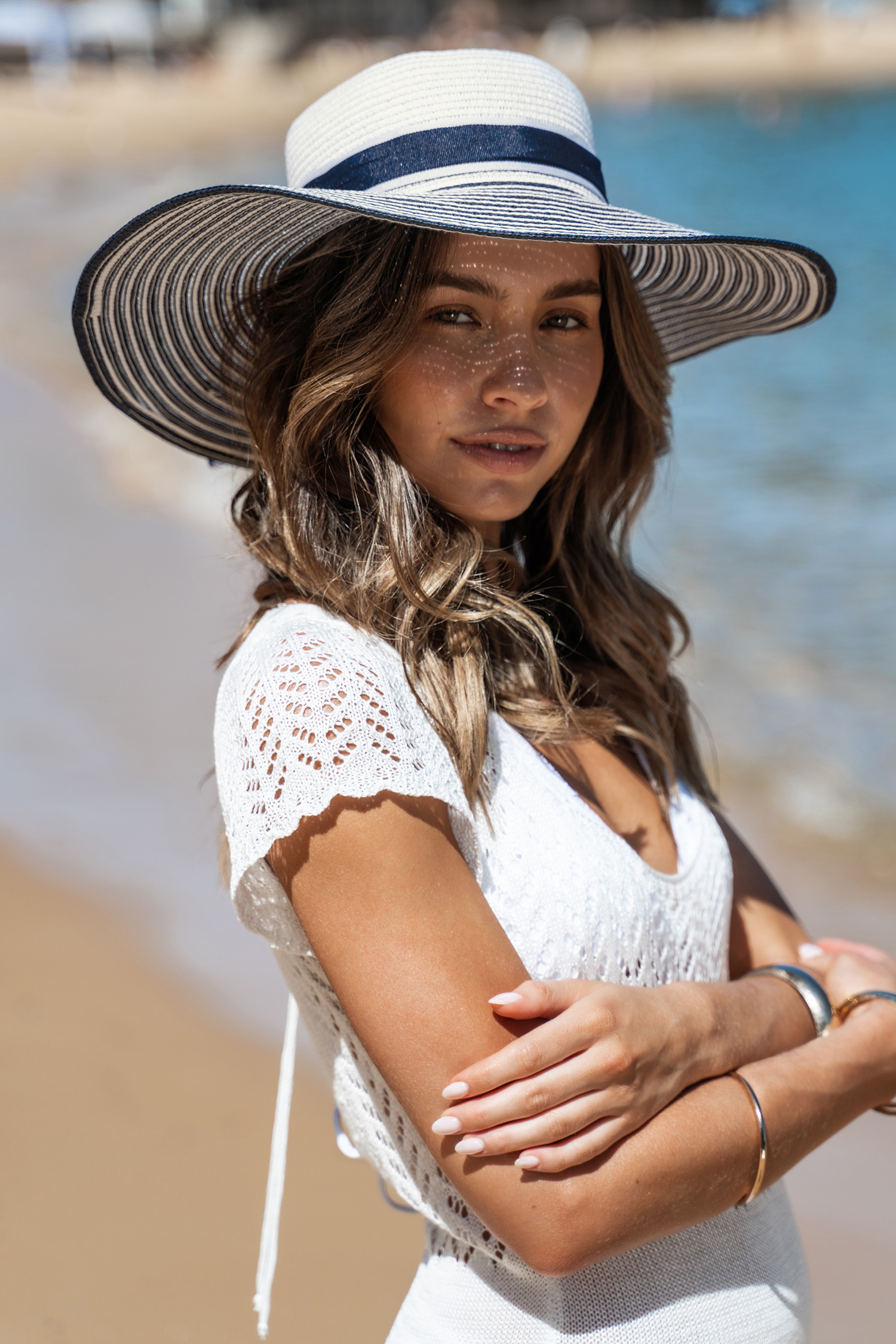 Sombrero de paja con lazo a rayas