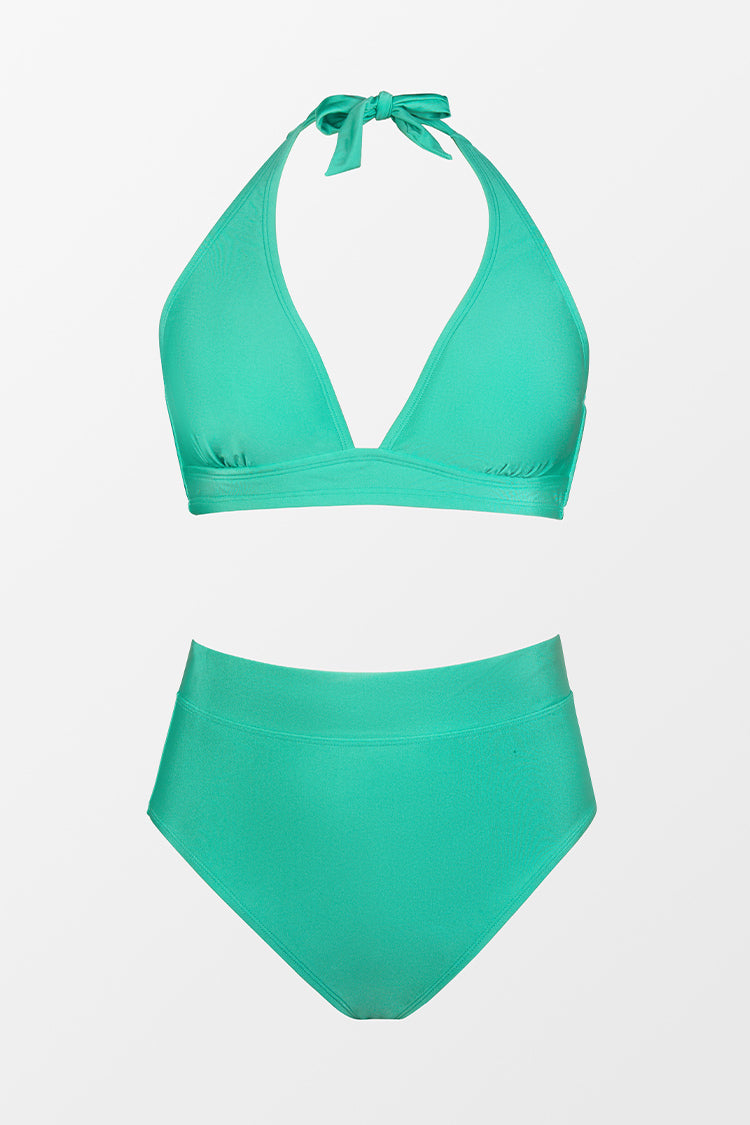 InicioStreet Art Conjunto de bikini de Talla grande Cintura alta Escote halter Lazos en la espalda