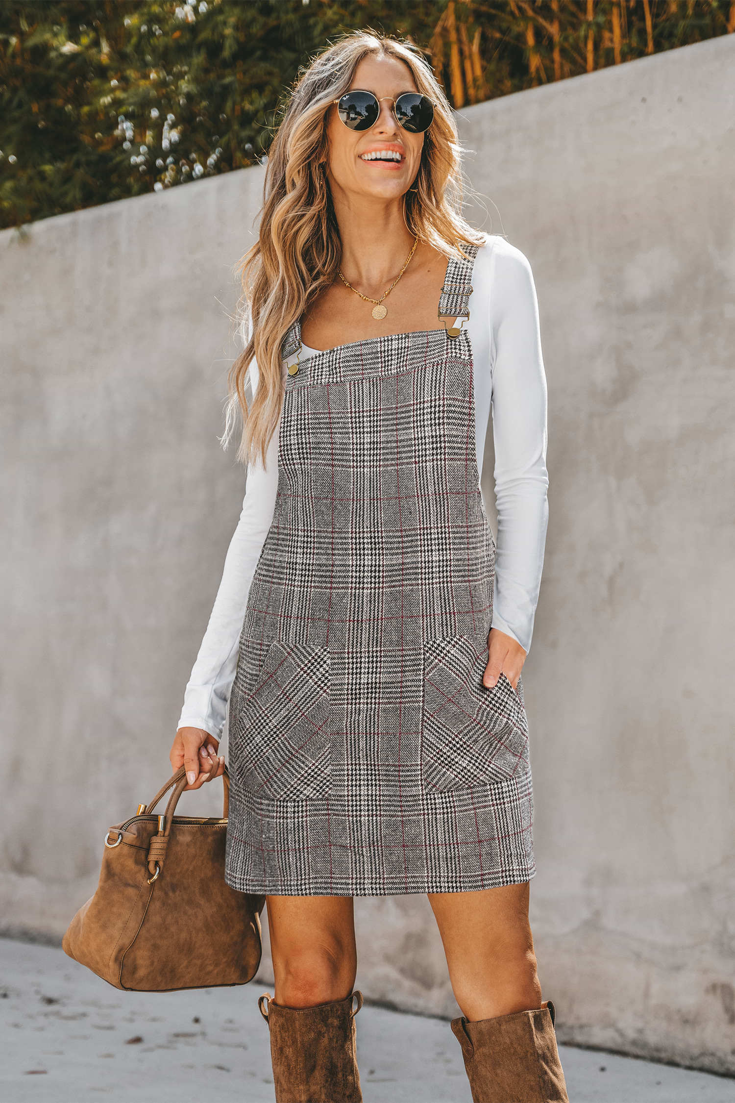Vestido mini a cuadros para descansar en el estudio