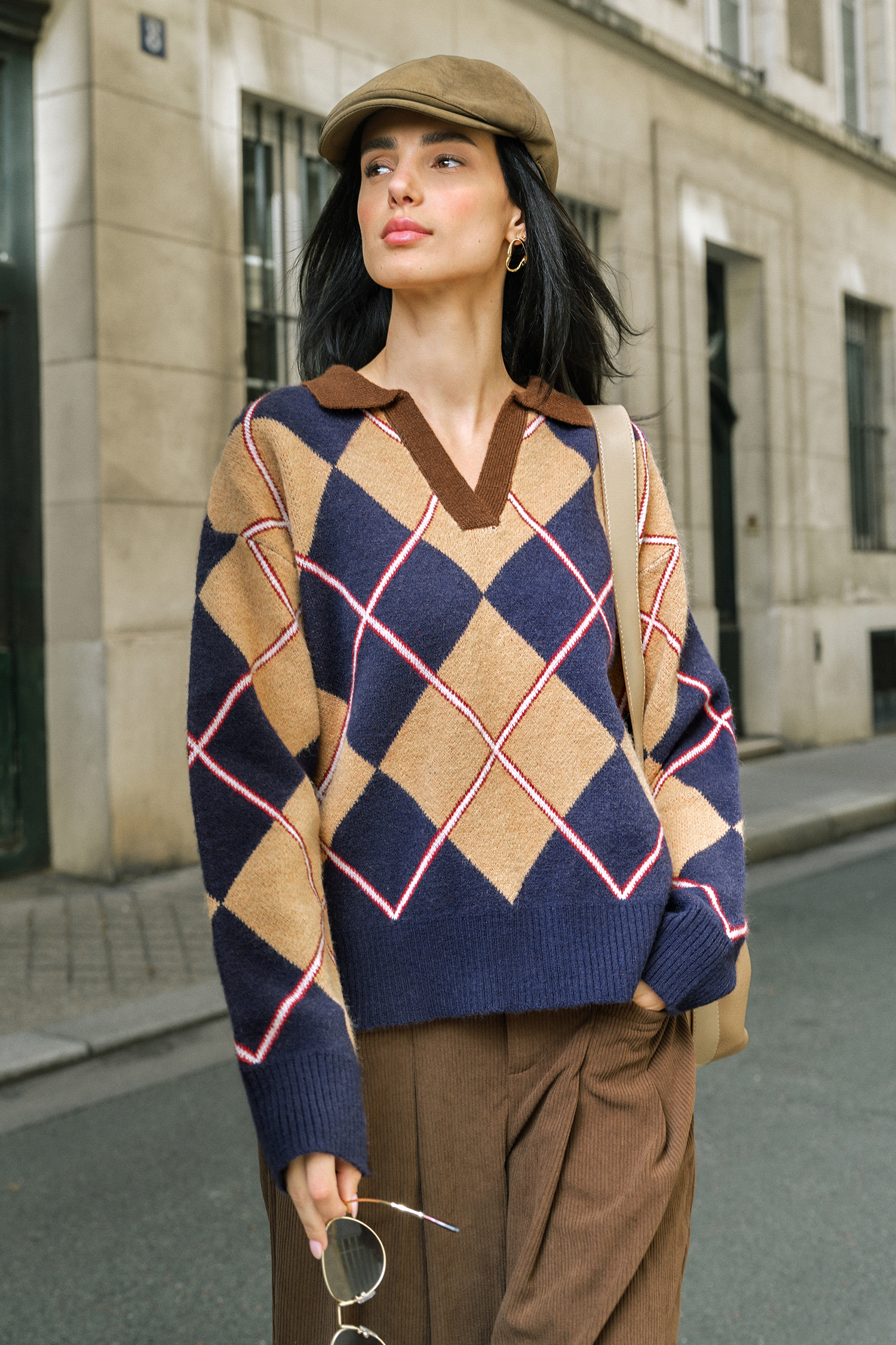 El suéter de rombos Study Hall es una prenda clásica de otoño. Su cuello y mangas largas le dan un acabado clásico y elegante.