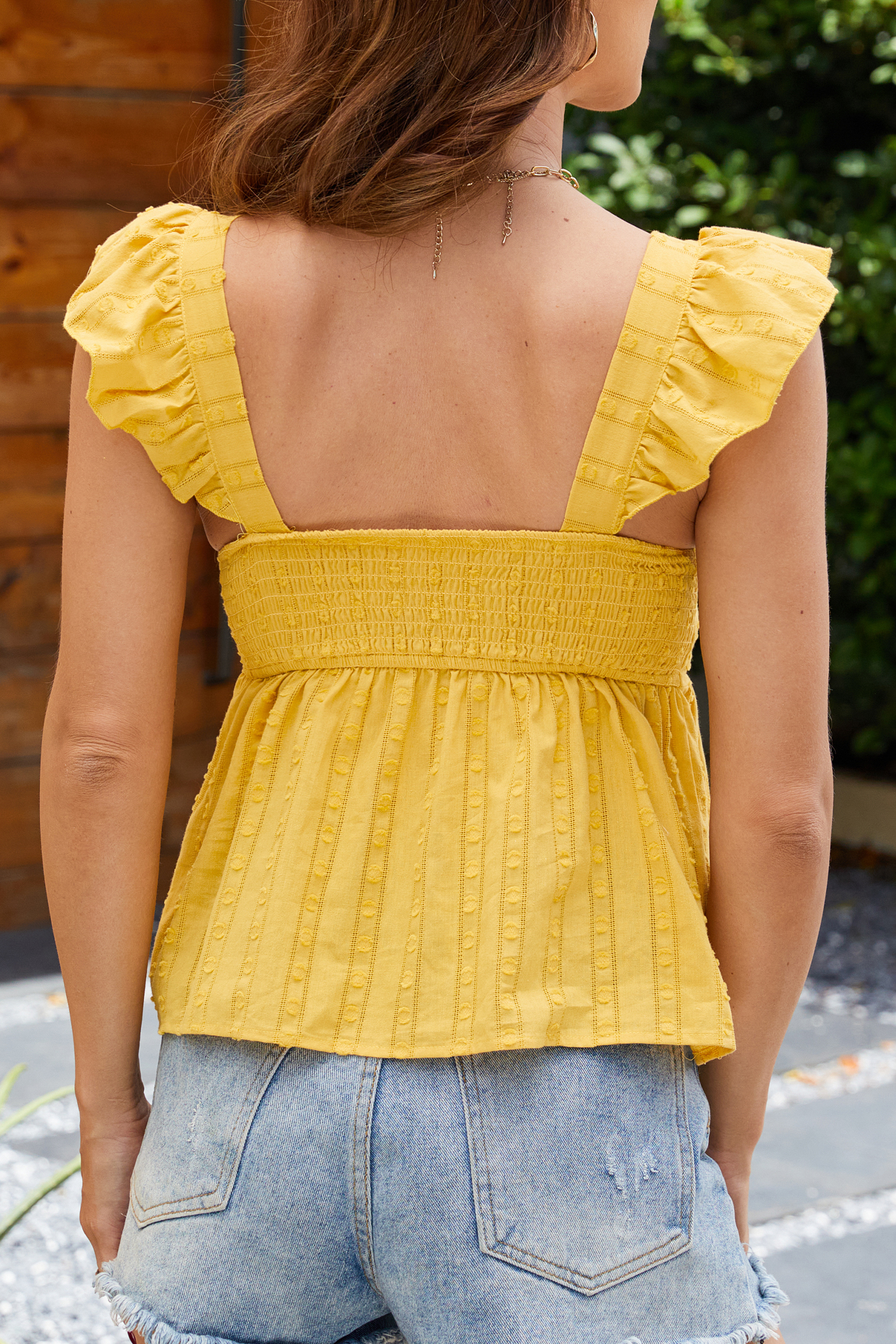 Top acampanado con escote en la parte delantera y escote en forma de corazón en amarillo sol