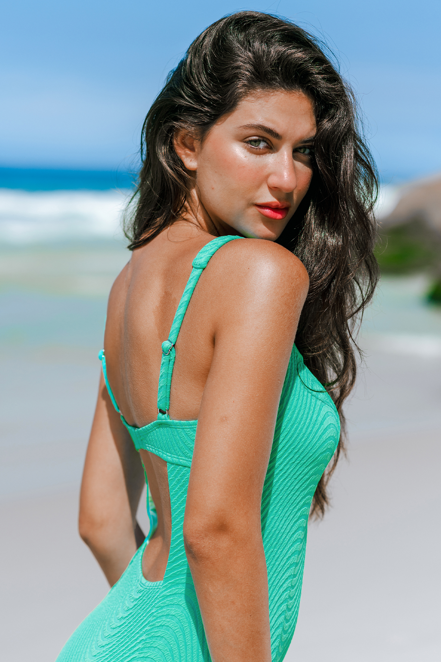 Traje de baño de una pieza con escote cuadrado en color menta Super Bloom