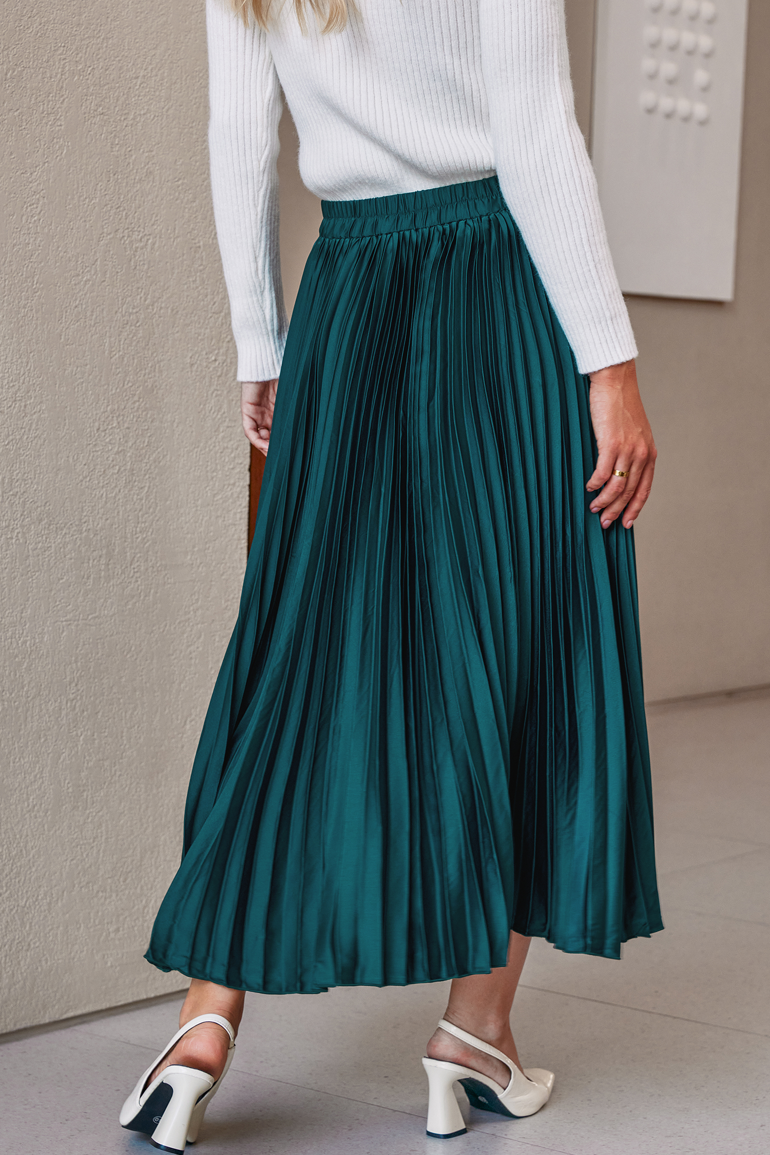 El vestido midi Swing By Green es perfecto para esos días en los que quieres sentirte elegante. Tiene cintura elástica, detalles plisados y un favorecedor largo midi.