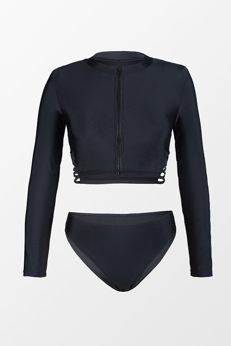 Tankini de manga larga con zíper por la parte de enfrente negro Esther