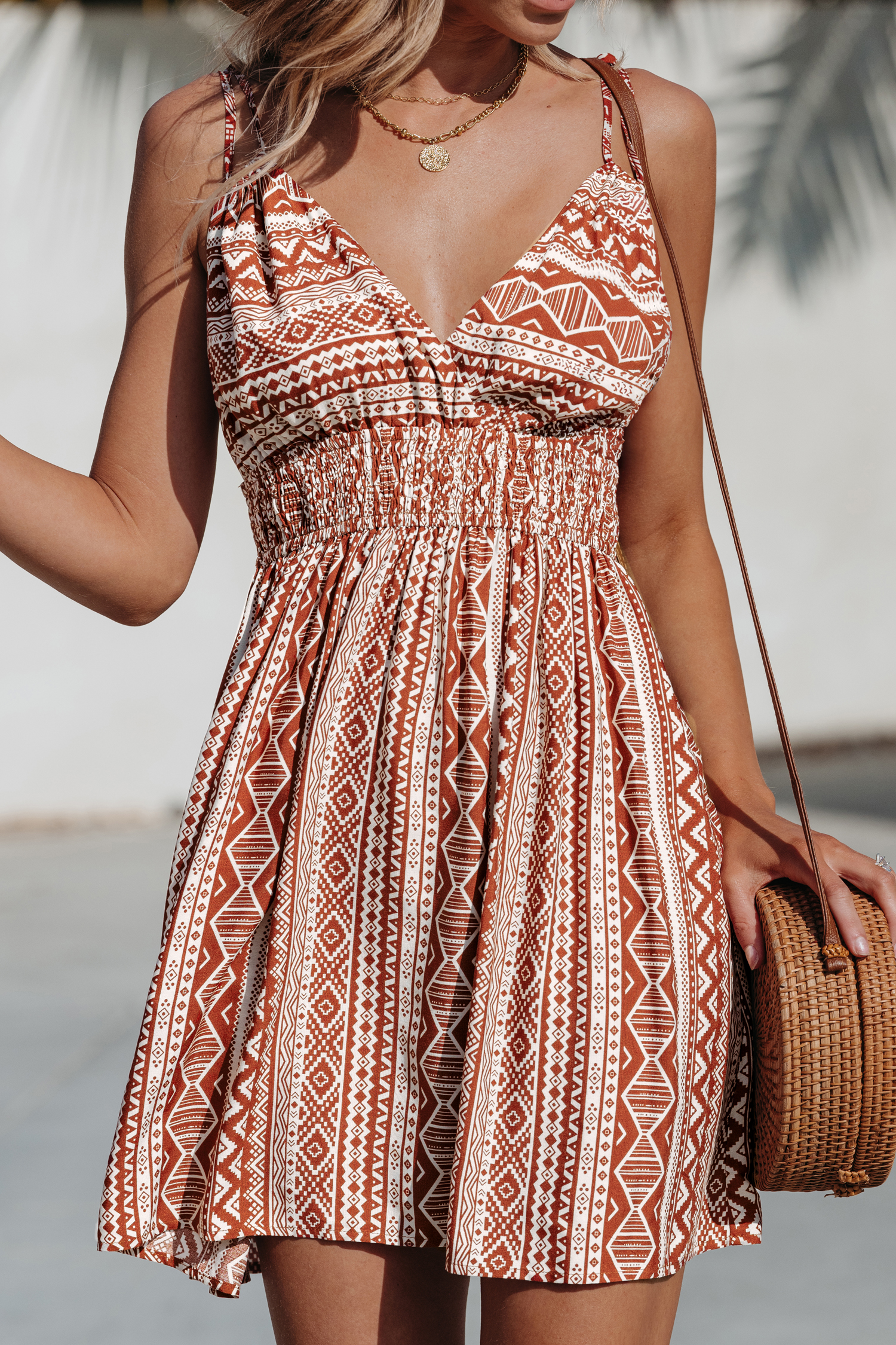 Minivestido bohemio con escote en forma de corazón y hombros anudados