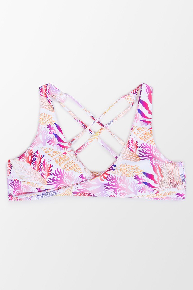 InicioTop de bikini con diseño cruzado y estampado coral Octavia