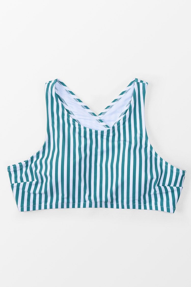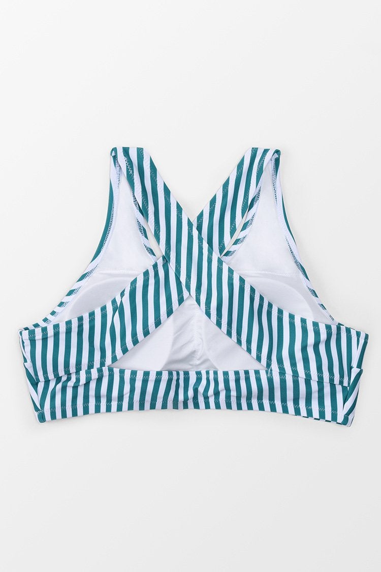 Top de bikini de talla grande entrecruzado de rayas Anya