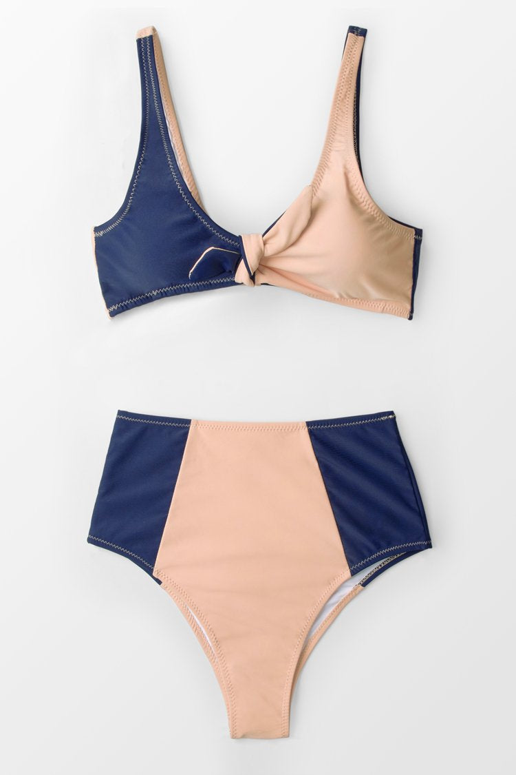 Top de Bikini de Tartán en la Parte Delantera en Bloque Azul y Albaricoque