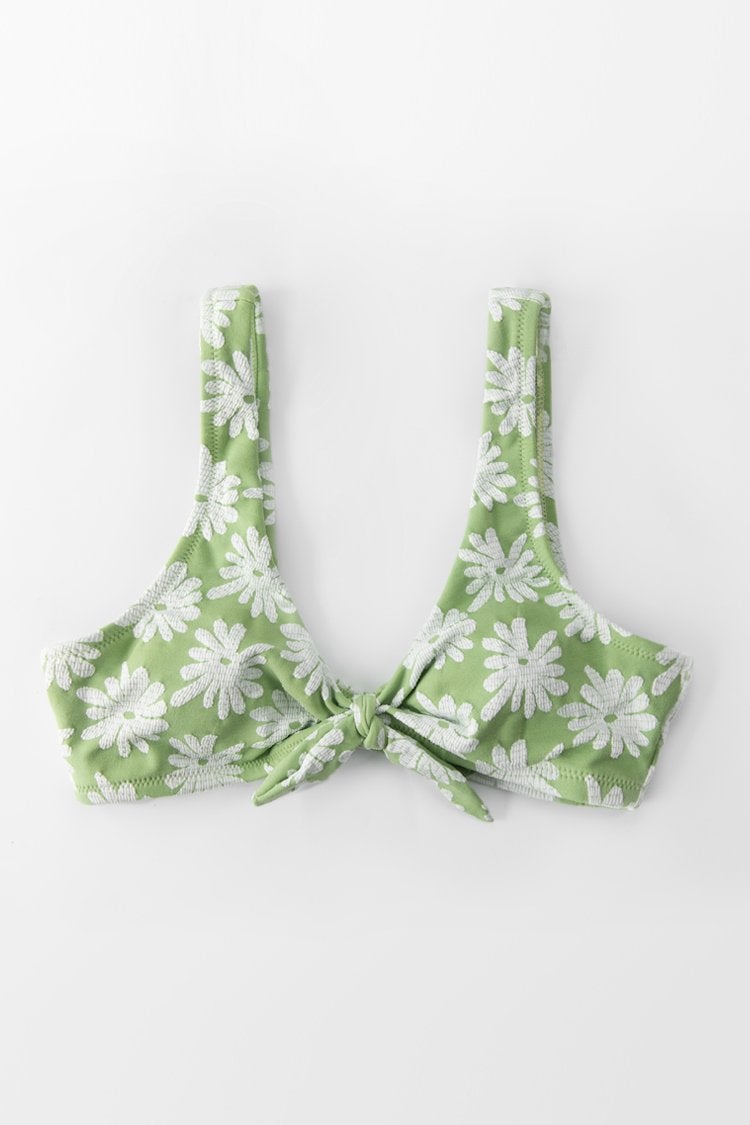 Top de Bikini Verde Claro Floral de Tirantes con Nudo