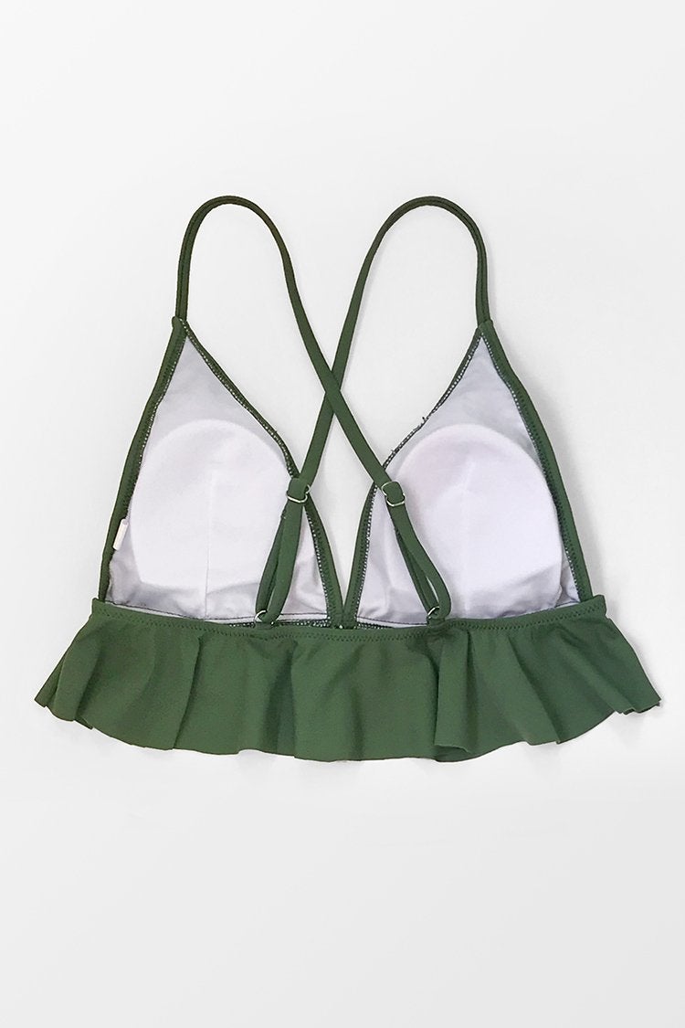 Conjunto de bralette de bikini con bloques de color verde oliva y braguitas estándar
