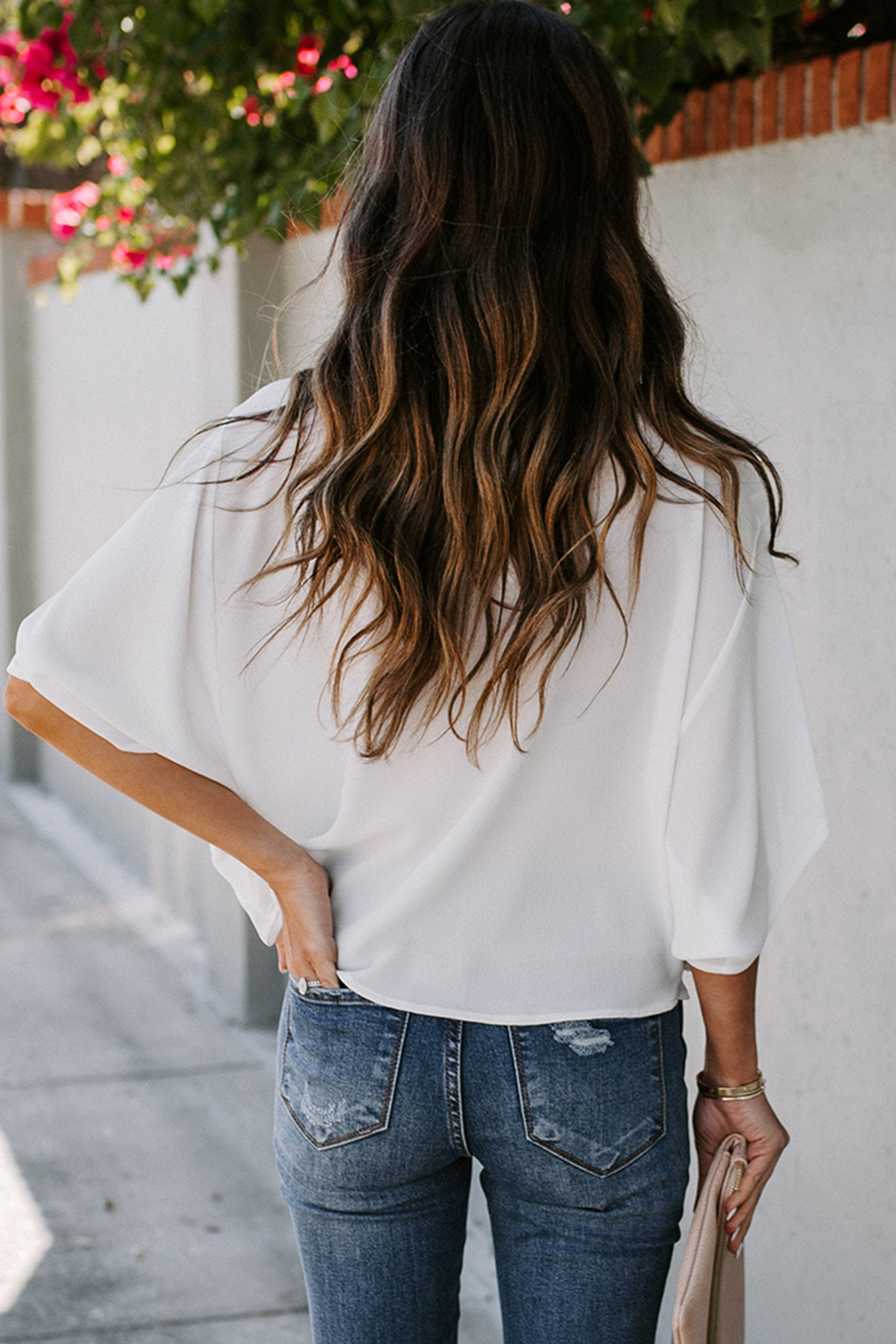 Top Holgado con Cuello Drapeado y Mangas Dolman