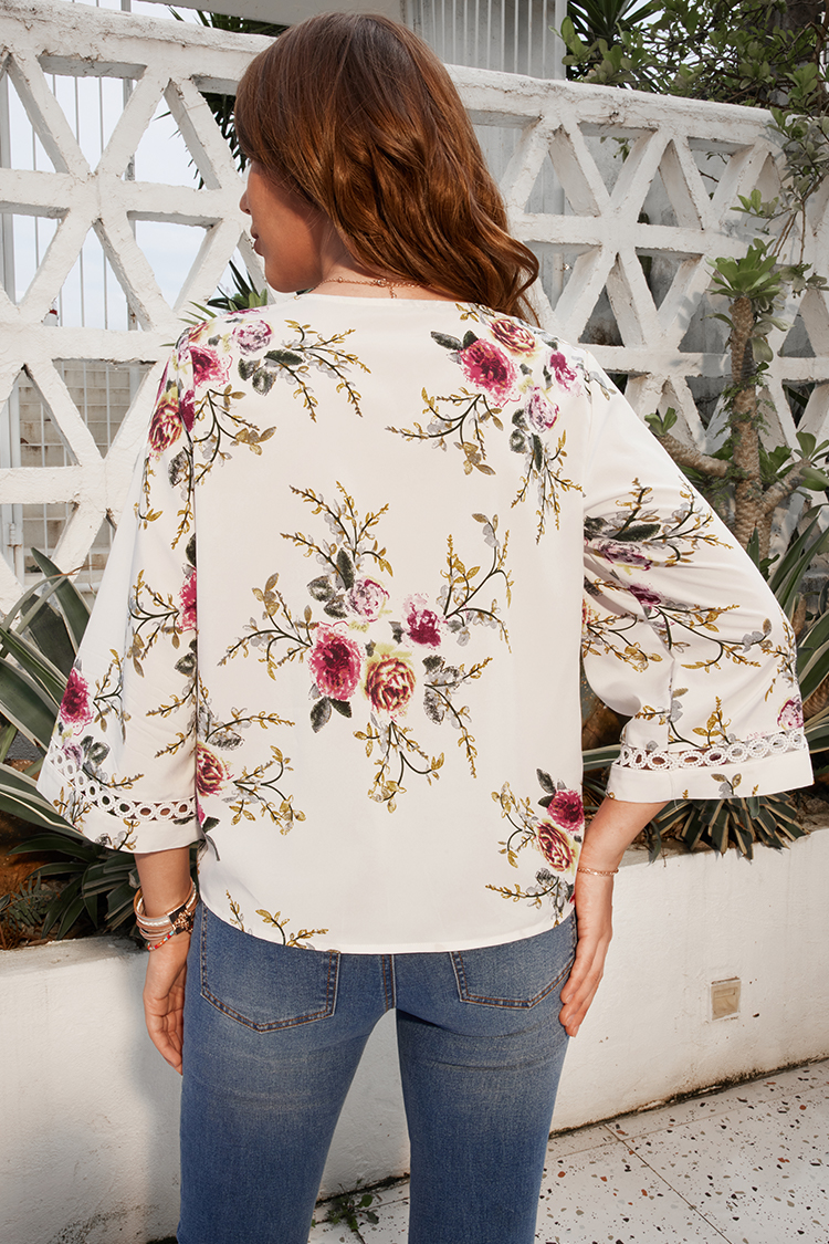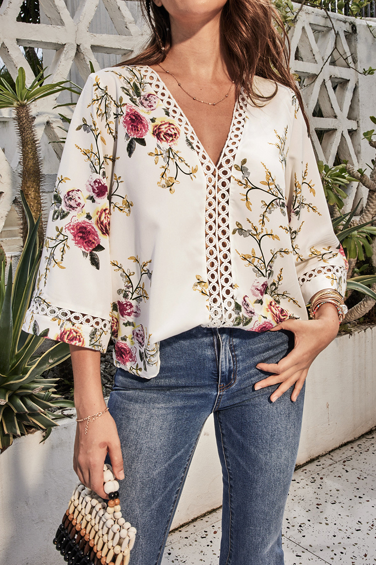 Tops con Ribetes de Encaje con Cuello en V y Mangas Acampanadas