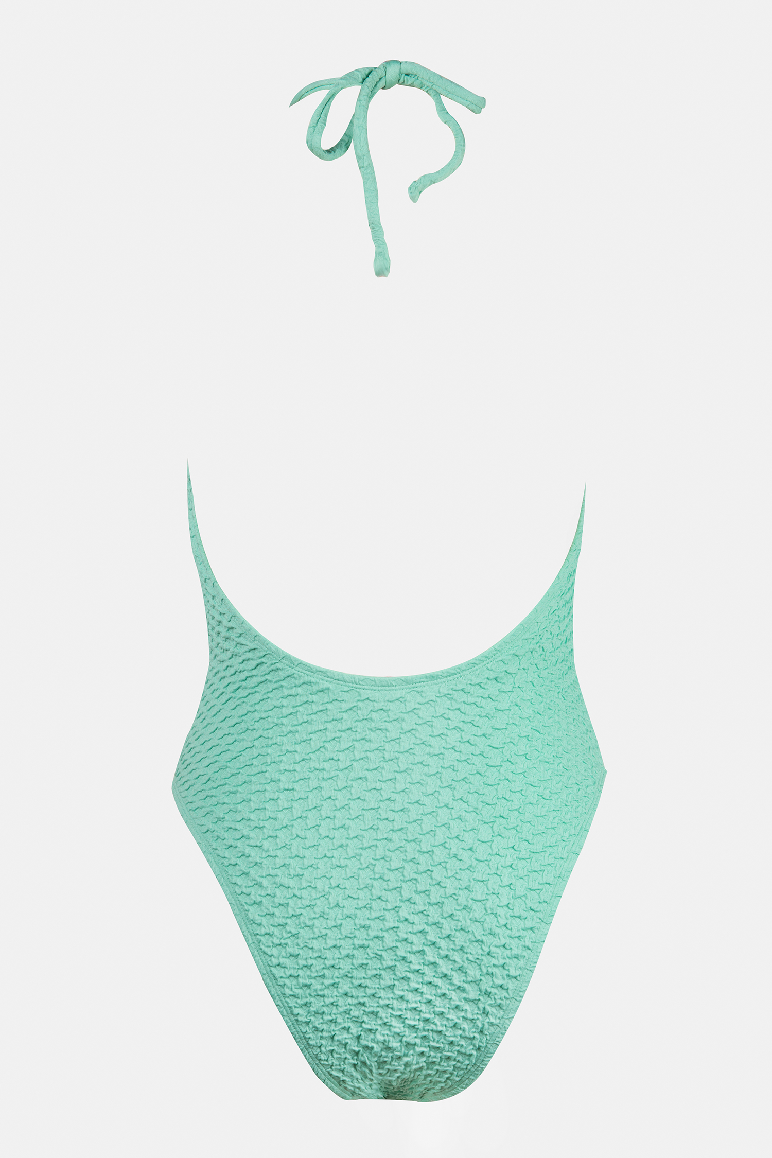 Traje de baño de una pieza ultra atrevido con textura recortada con cuello halter fruncido