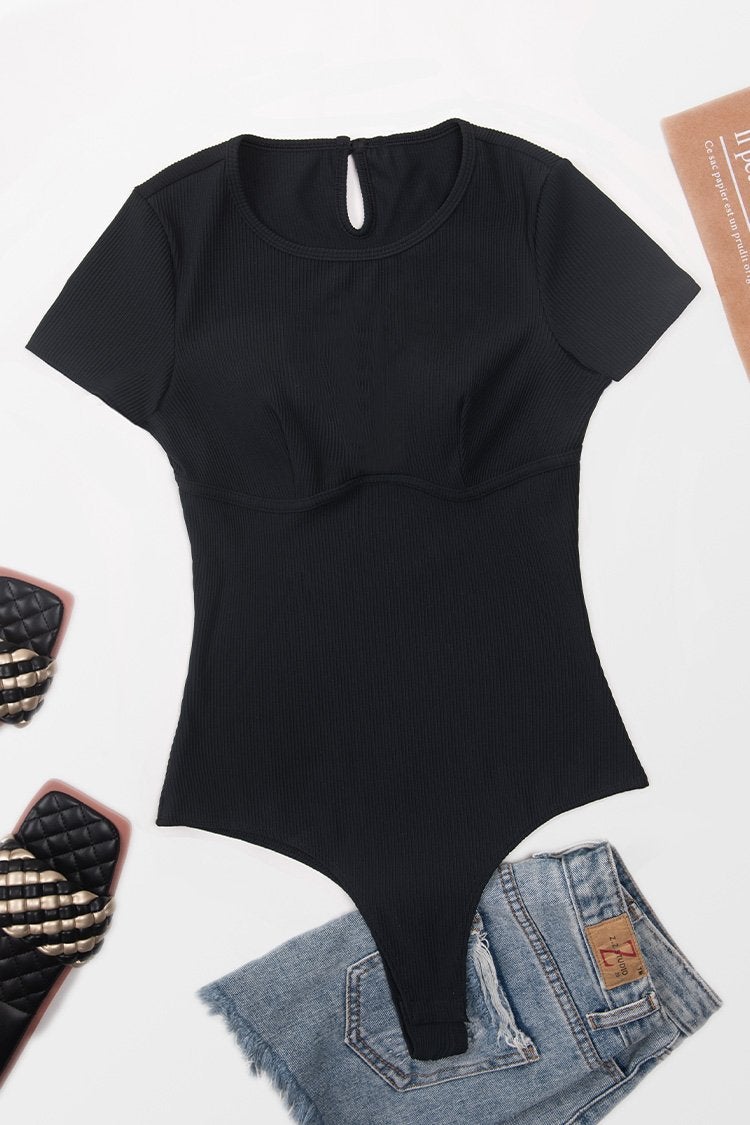 InicioTraje tipo body atrevido de manga corta con cuello redondo negro Angelica