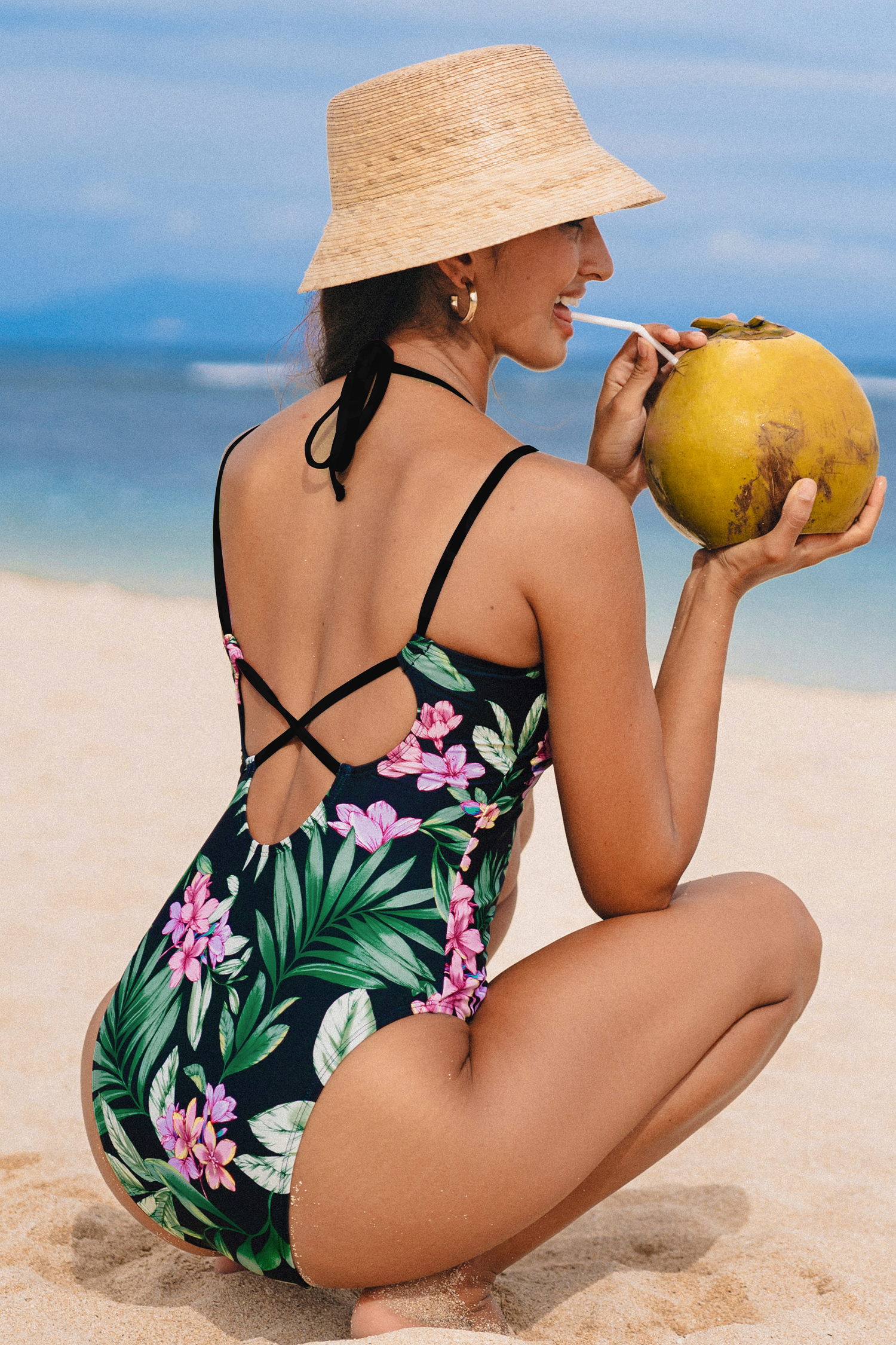 Bañador de una pieza con espalda baja y estampado floral de niebla tropical