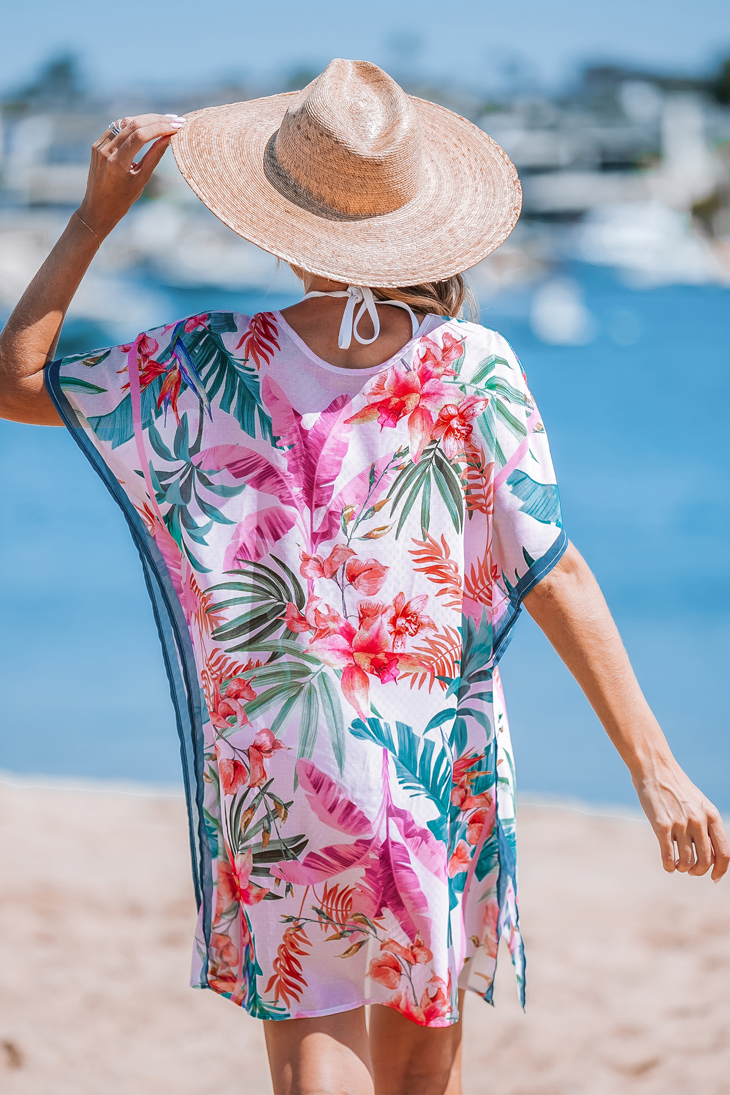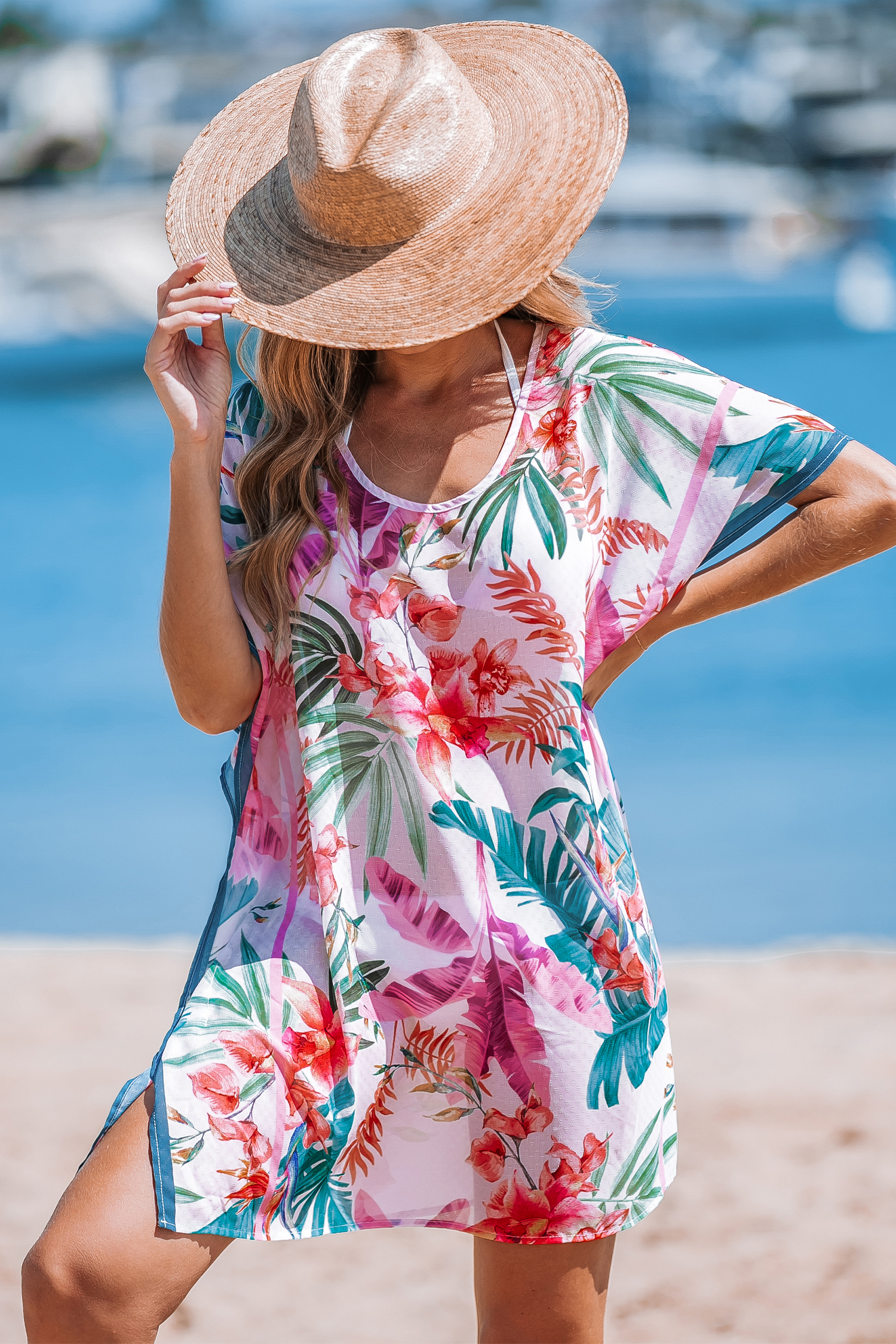 Mini pareo tropical de manga corta con cuello redondo
