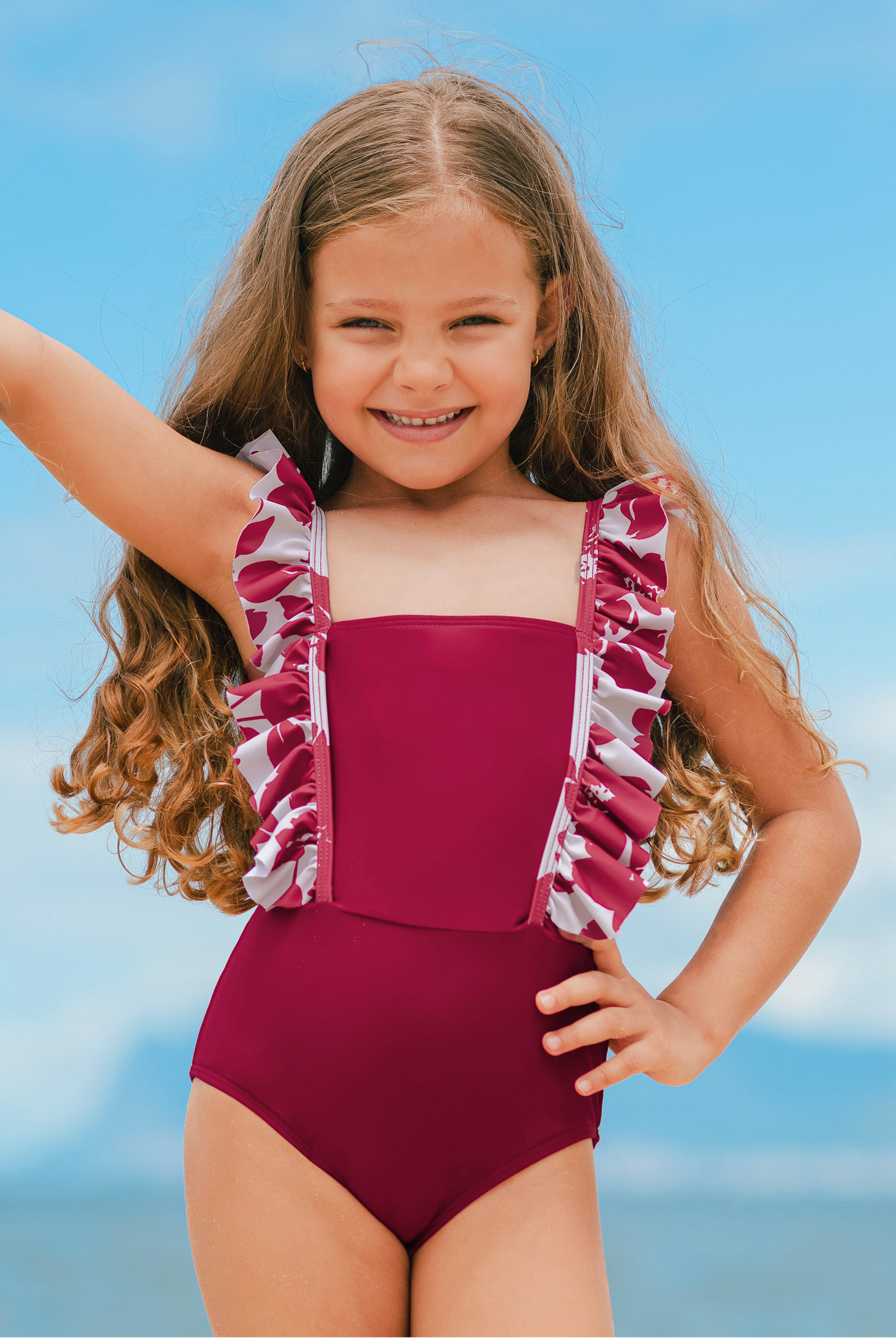 ¡Deja que tu pequeña florezca con el traje de baño de una pieza con estampado floral Tropical Tots! Con un escote cuadrado con ribetes con volados y máxima comodidad, es la opción perfecta para los días de playa llenos de diversión.