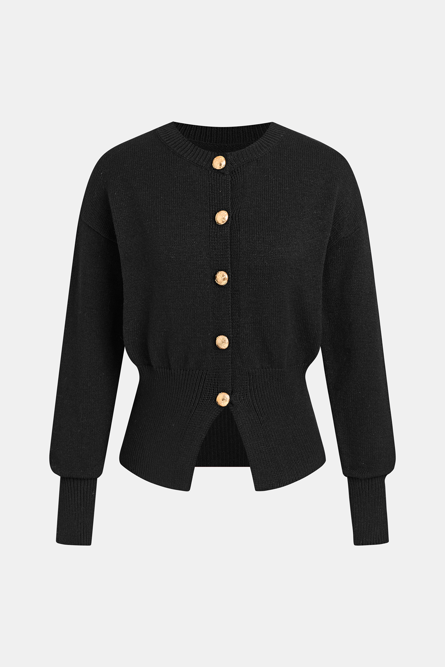El cárdigan negro Unexpected Turn es perfecto para darle un toque especial a tu look. Su cuello redondo, mangas largas y botones dorados completan el look con sutil elegancia.