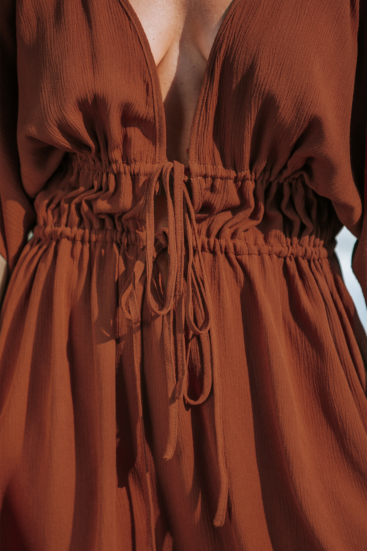 Vestido tipo pareo con cuello en V y abertura en forma de cerradura