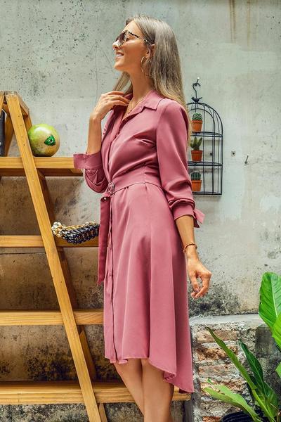 Vestido con botones de cinturón rosa coral