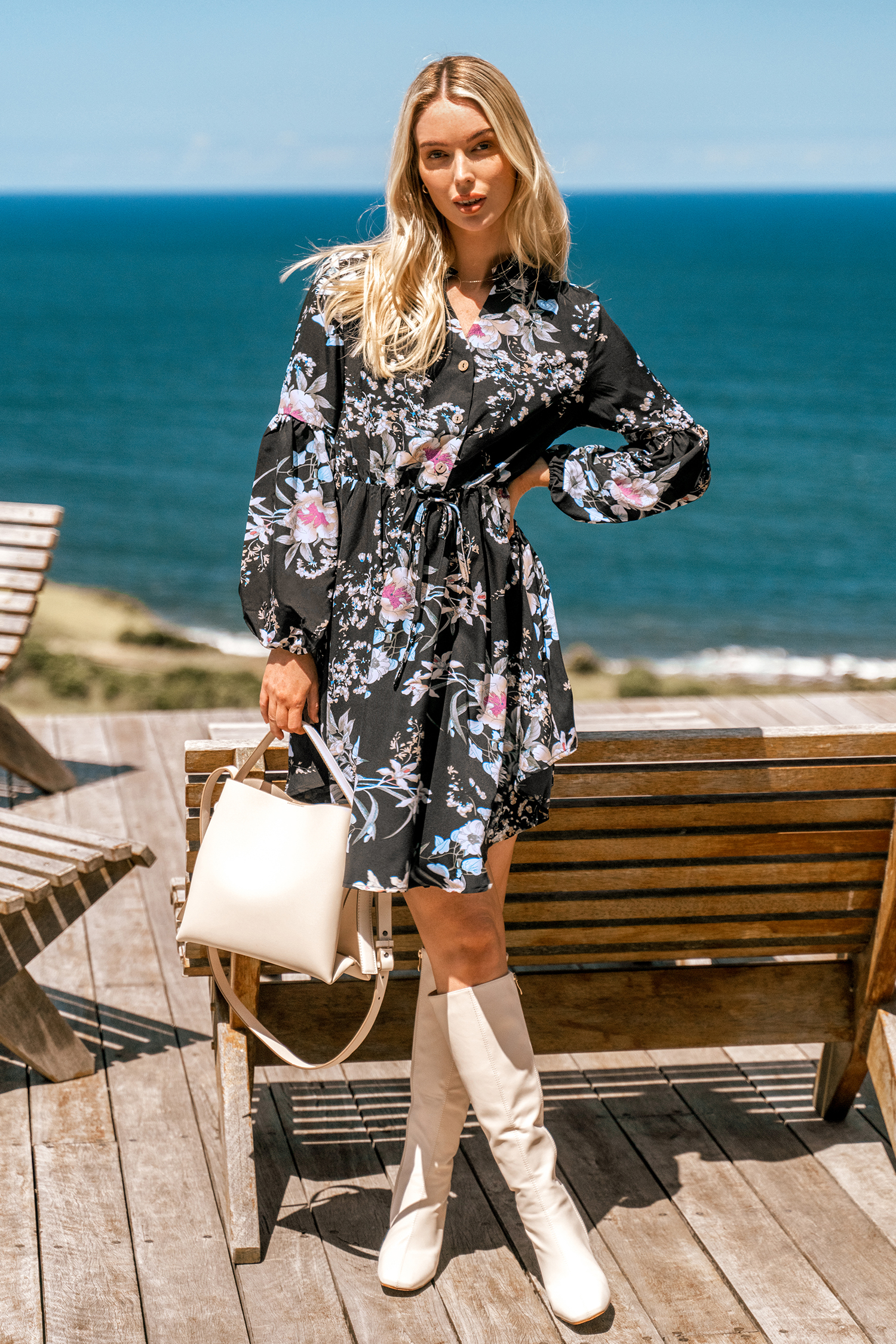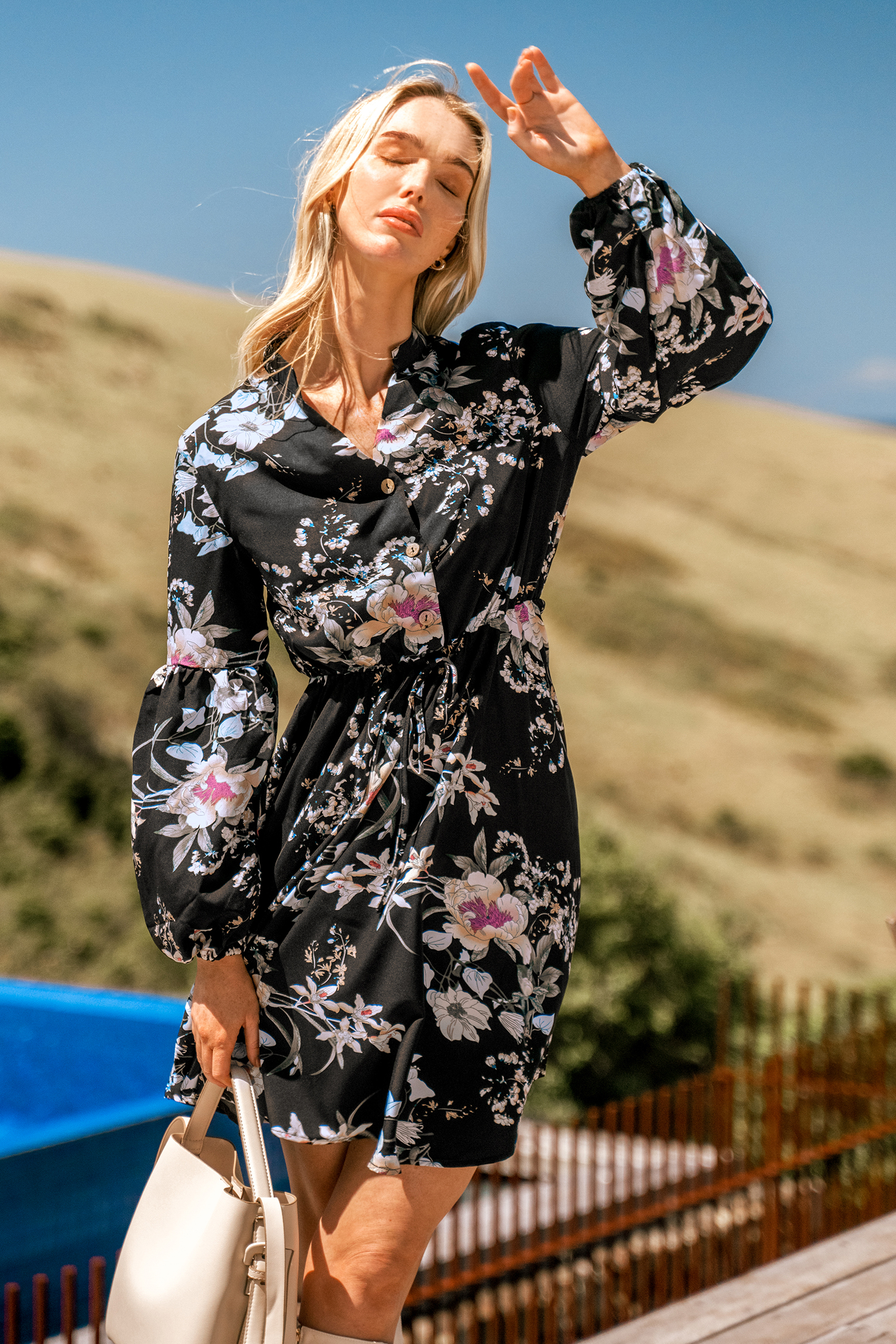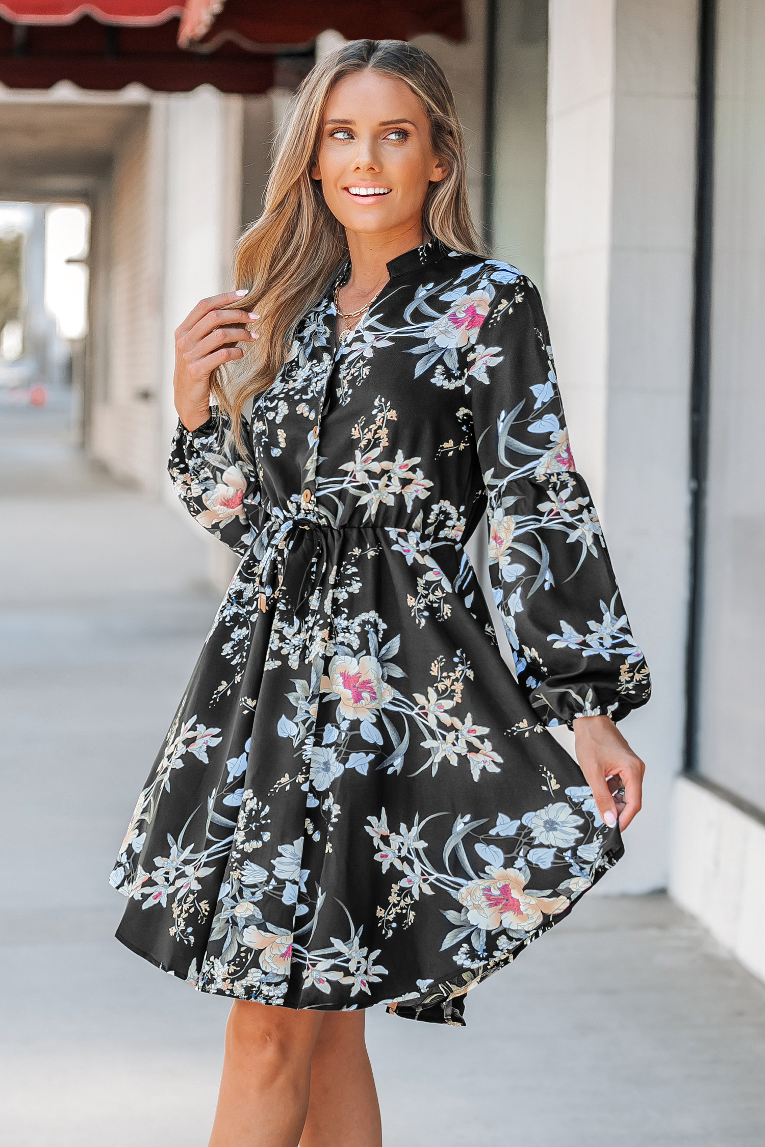 Este vestido con cuello en V y cordones es perfecto para quienes buscan una combinación de elegancia y encanto. Tiene mangas largas, escote en V y un diseño mini. El detalle de cordones en la parte delantera aporta un toque de sensualidad, mientras que los delicados botones de la prenda aportan un encantador toque final.