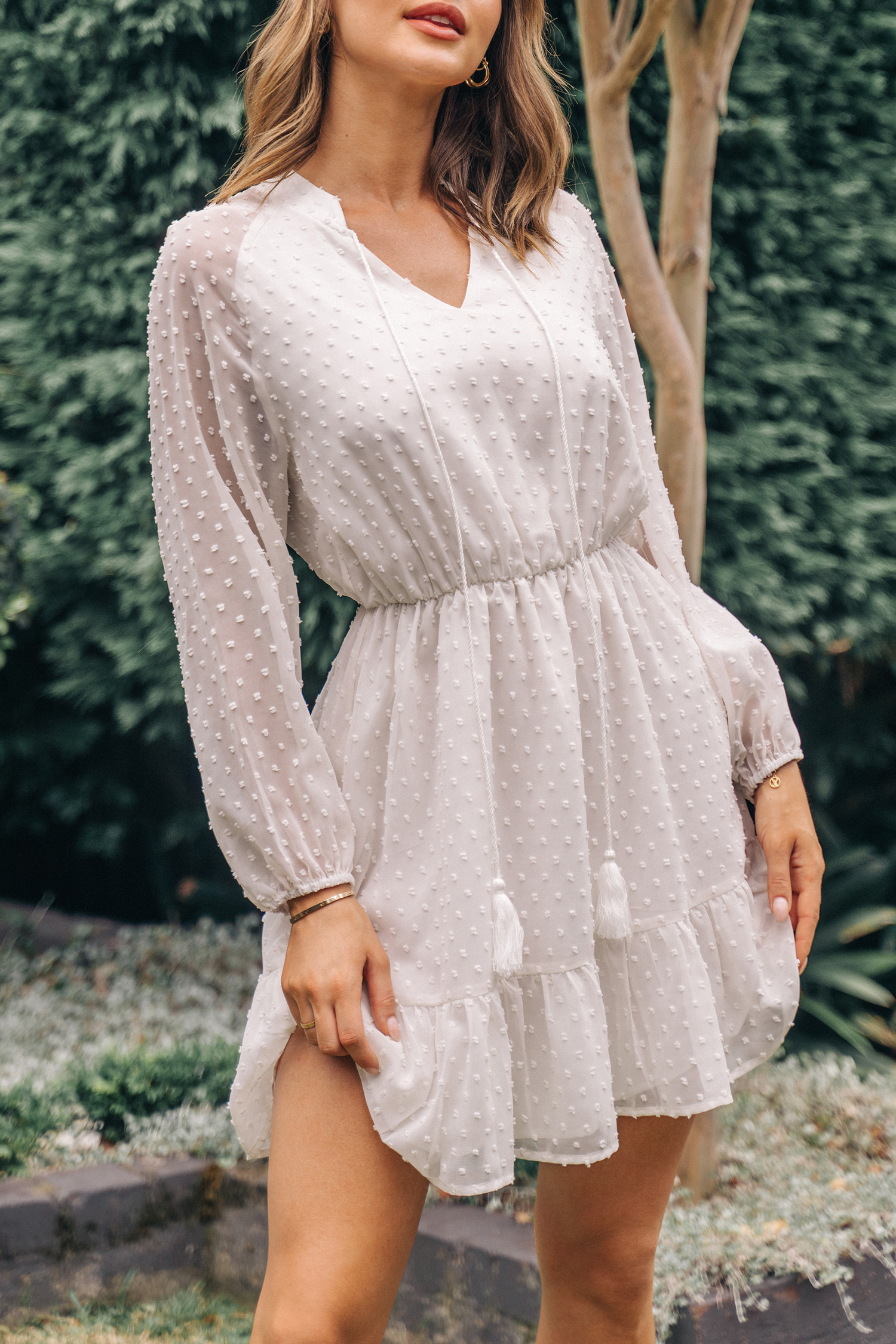 Vestido con volantes y cordones