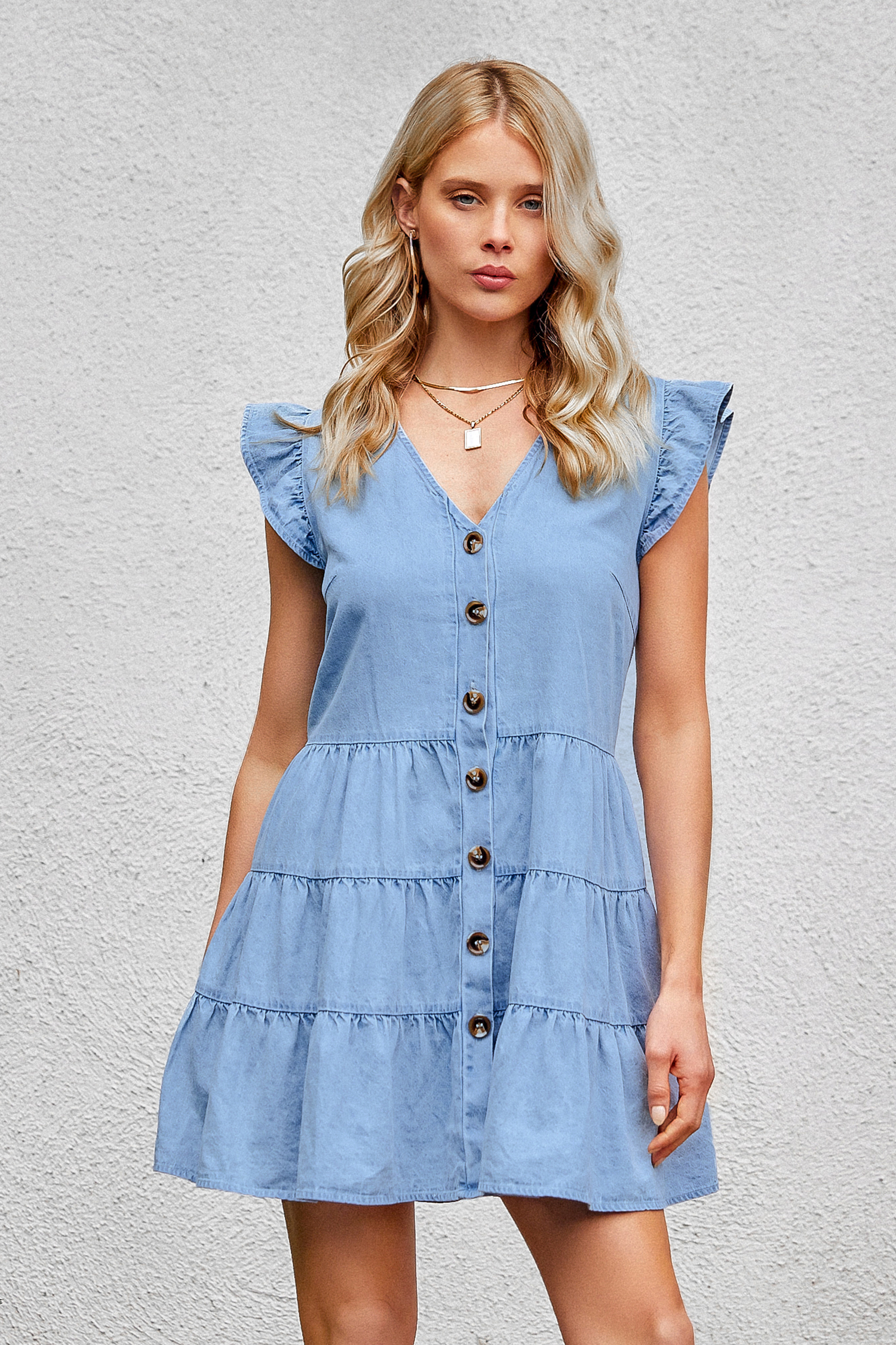 InicioVestido de cambray con botones al frente