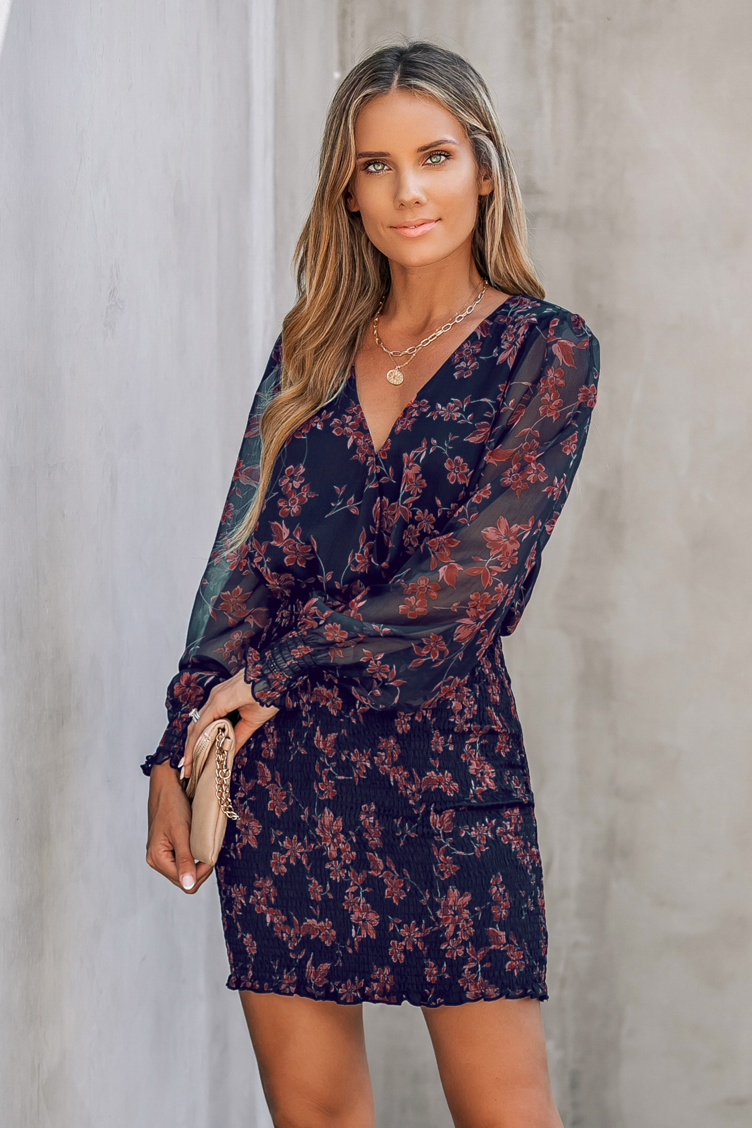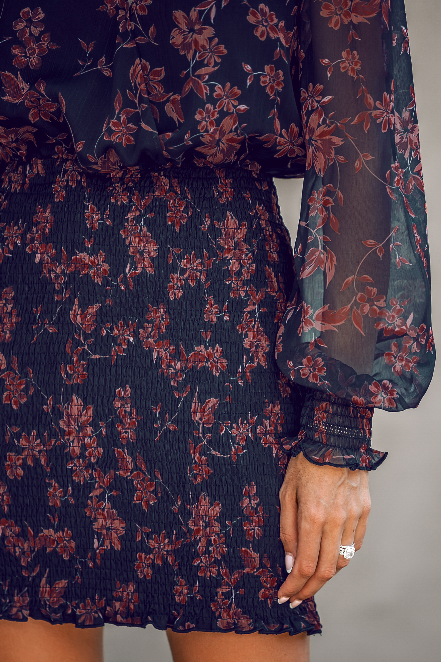 Vestido de manga larga campesina con estampado floral