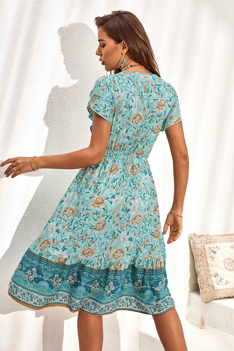 Vestido en forma de A Escote V Mangas abullonadas Estampado étnico