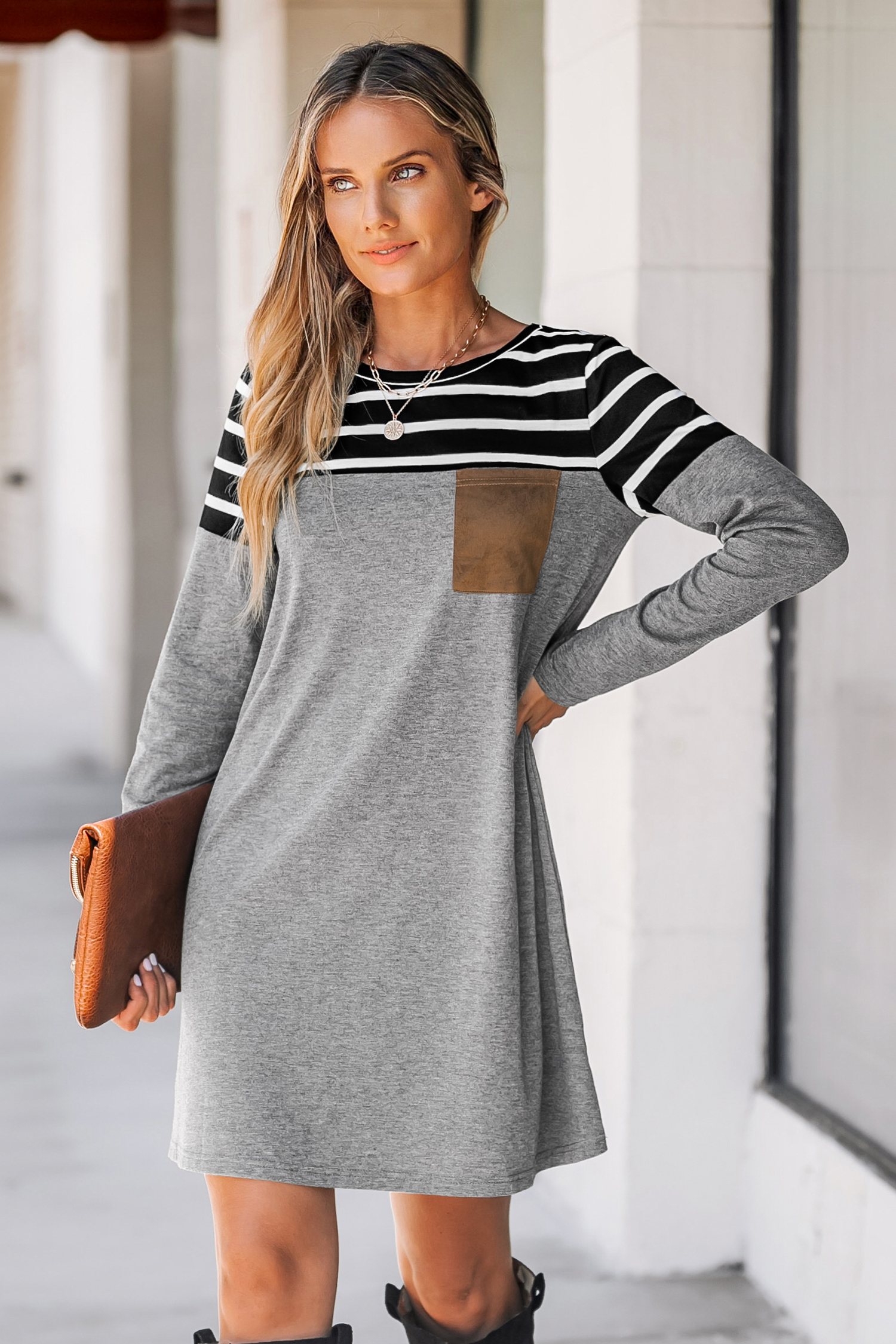 Vestido estilo camiseta de manga larga con bloques de color a rayas