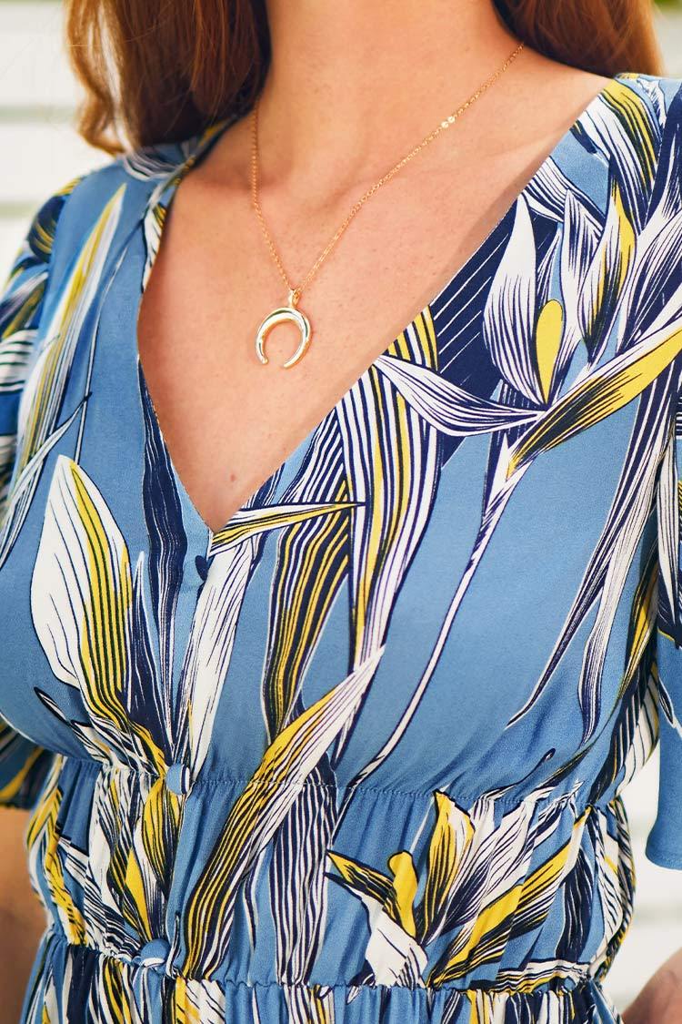 Vestido Heidi Abotonado de Cintura Elástica con Cuello V