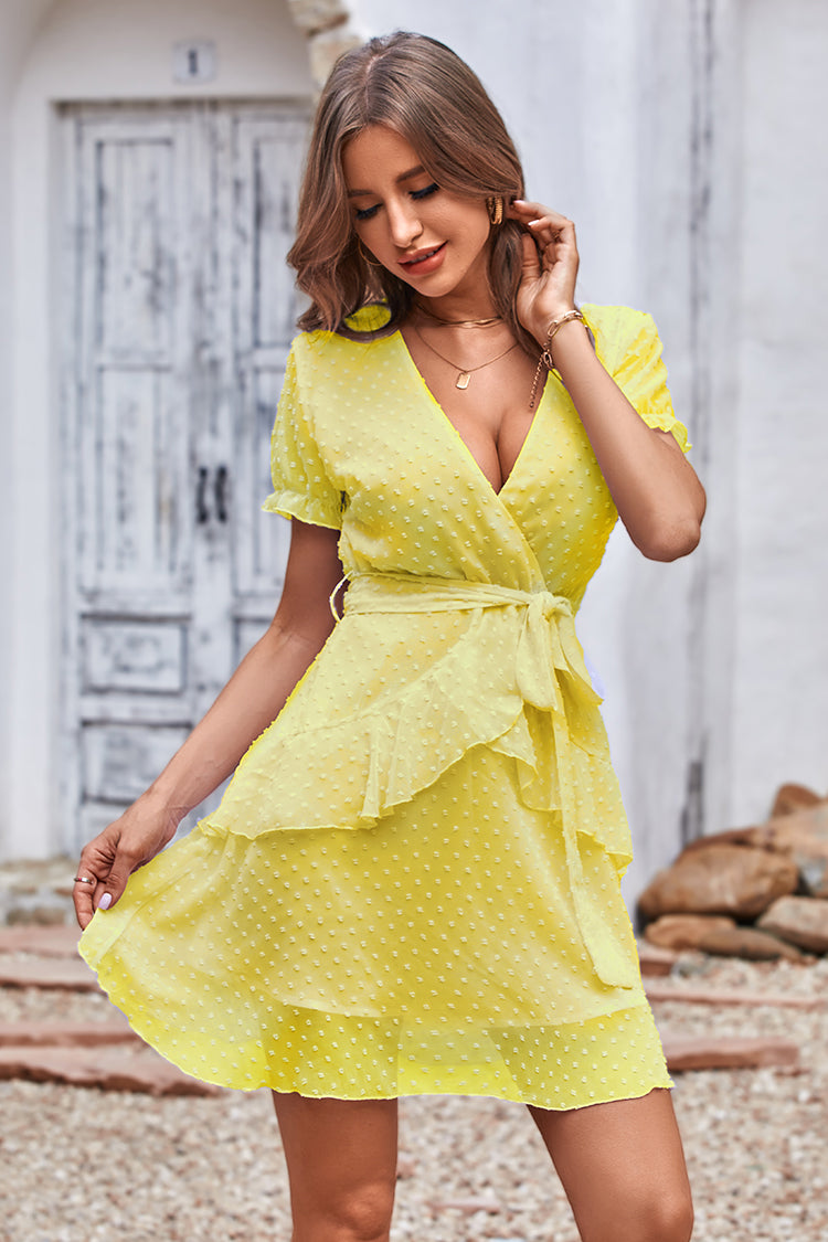 Vestido Ke’e Beach amarillo con escote V y en forma de A