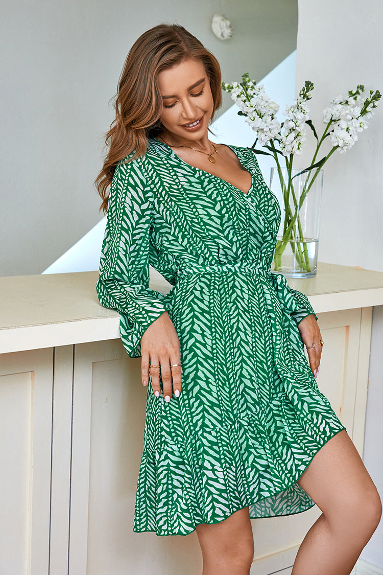 Vestido Londyn con escote V y mangas de campana y en forma de A