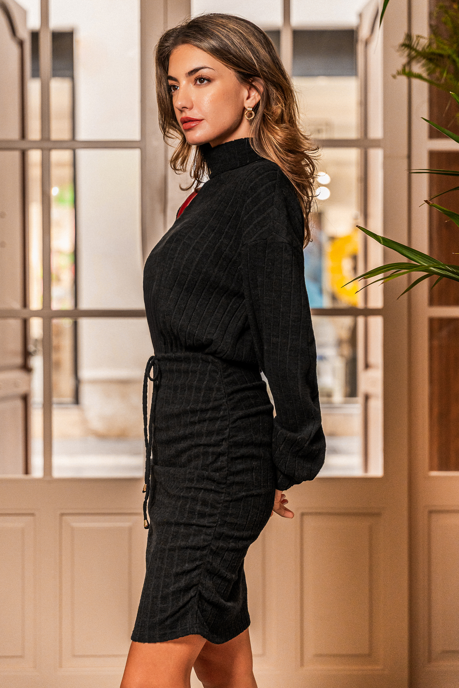 El minivestido negro What's the Plan aporta un toque de energía, seguridad y diversión a cualquier salida nocturna. Con cuello alto, mangas largas, detalle de cordón y largo mini, es perfecto para cualquier ocasión, desde salidas informales hasta planes espontáneos.
