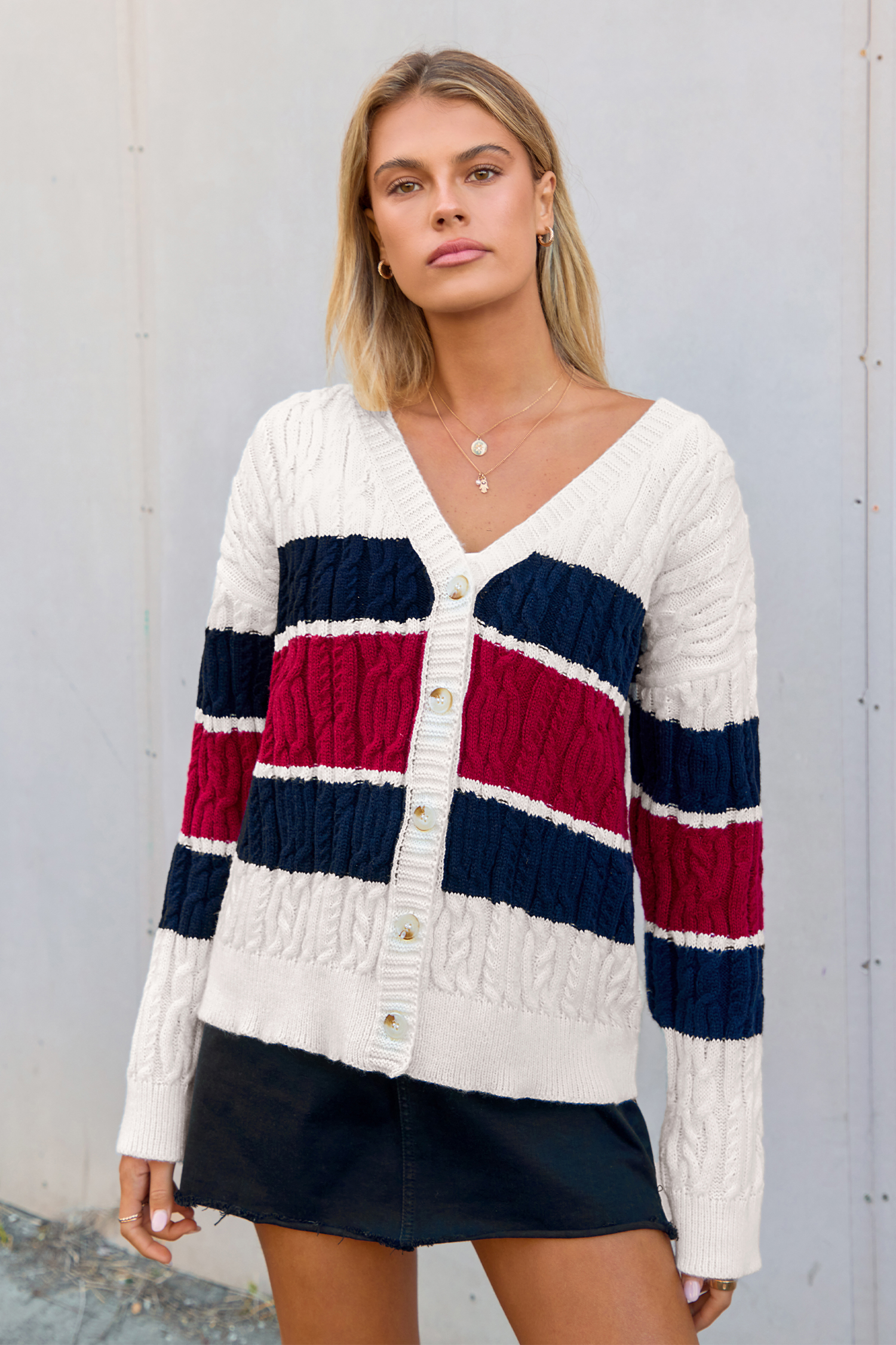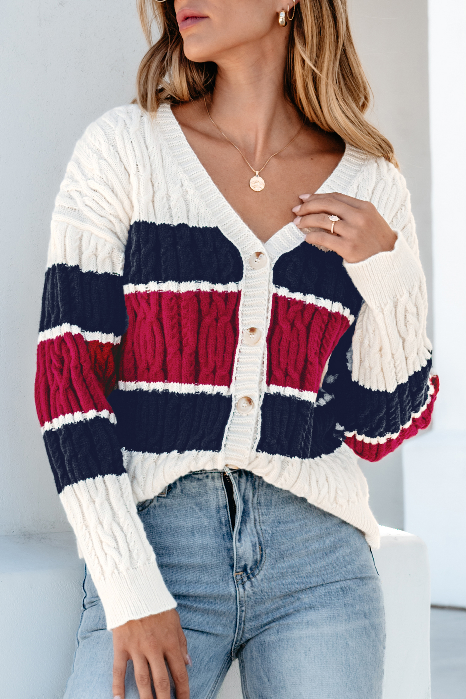 Cárdigan de manga larga con botones delanteros y punto trenzado blanco